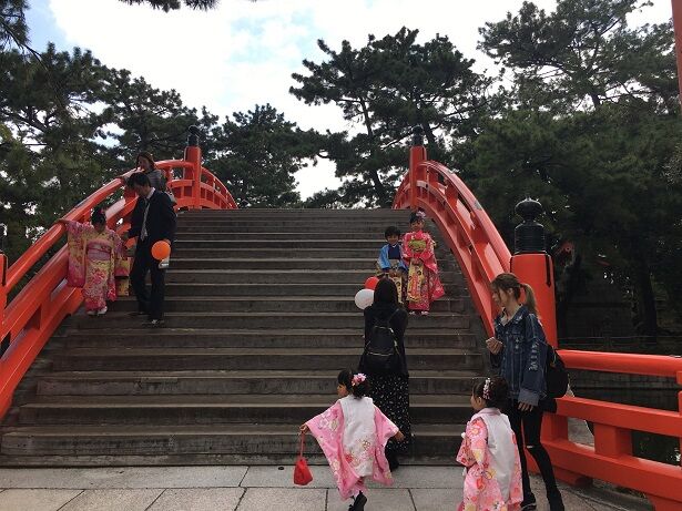 太鼓橋では何組もの七五三を見かけました。この風景はかわりません。