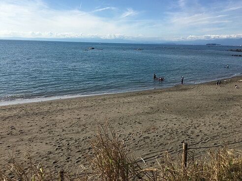 10月23日久しぶりの朝から晴れた日、葉山公園の前に広がる大浜海岸へ献花に行きました。