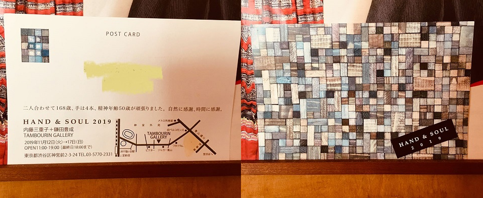 内藤三重子+鎌田豊成 「HAND&SOUL 2019」展の案内の葉書を頂きました。