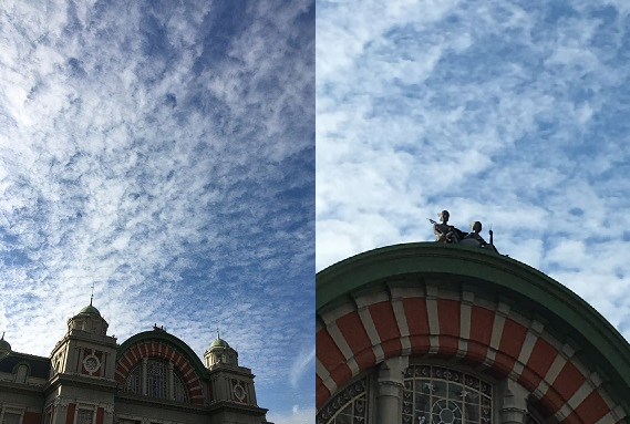 大阪中之島の公会堂の空は秋の空。今まで気が付きませんでしたが、ドームの上に何か天使のような像が?ギリシャ、ローマの神話の商いの神だって!さすが大阪