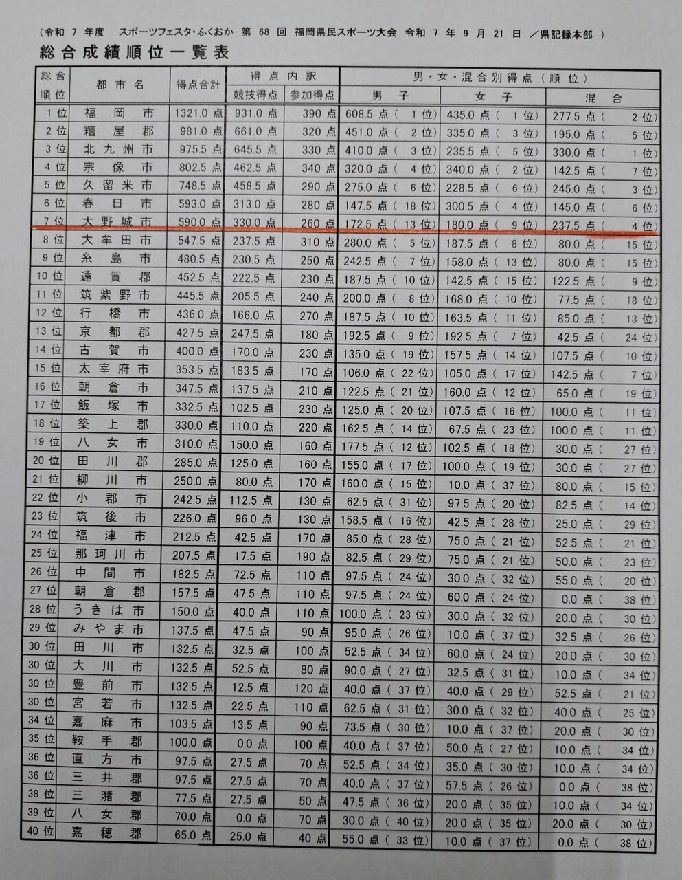 ¡¡¡¡¡ÖÎáÏÂ7ǯÅÙ¥¹¥Ý¡¼¥Ä¥Õ¥§¥¹¥¿¡¦¤Õ¤¯¤ª¤«¡ÖÂè68²óÊ¡²¬¸©Ì±¥¹¥Ý¡¼¥ÄÂç²ñ¡×ɽ¾´¼°¡×