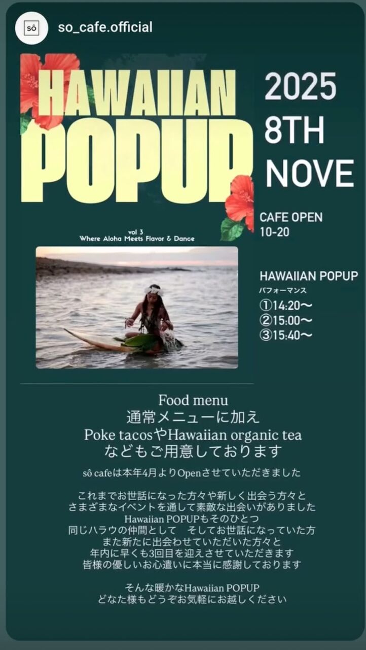 ±§¼£¤Îso¥«¥Õ¥§¤µ¤ó¤Ç³«ºÅ¤µ¤ì¤¿¡ÖHAWAIIAN POPUP¡×¥¤¥Ù¥ó¥È¤Ç¡¢»ä¤¿¤Á¤Î¥°¥ë¡¼¥×¤â¥Õ¥é¤òÍ٤äƤ¤¿¡£Ìó30ʬ¤¯¤é¤¤¤Î»ý¤Á»þ´Ö¤¬¤¢¤Ã¤Æ¡¢Á´Éô¤Ç6¶Ê¡¢¤¦¤Á»ä¤â4¶ÊÍ٤ä¿¡£ÀèÆü¤Î¹âÄФΥ¤¥Ù¥ó¥È¡Ê2¶Ê¤Ç¤·¤¿¡Ë¤ÈÈæ¤Ù¤Æ¤¸¤Ã¤¯¤êÍ٤줿¤Î¤Ç³Ú¤·¤«¤Ã¤¿¤·¡¢¤Ç¤â¤ä¤Ï¤ê½ª¤ï¤Ã¤Æ¤·¤Þ¤¦¤È¤¢¤Ã¤È¤¤¤¦´Ö¤À¤È»×¤¦¡£