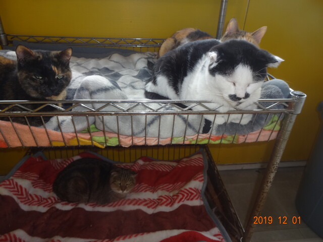 ひだまりで、ウトウトしている、チャプリちゃん達