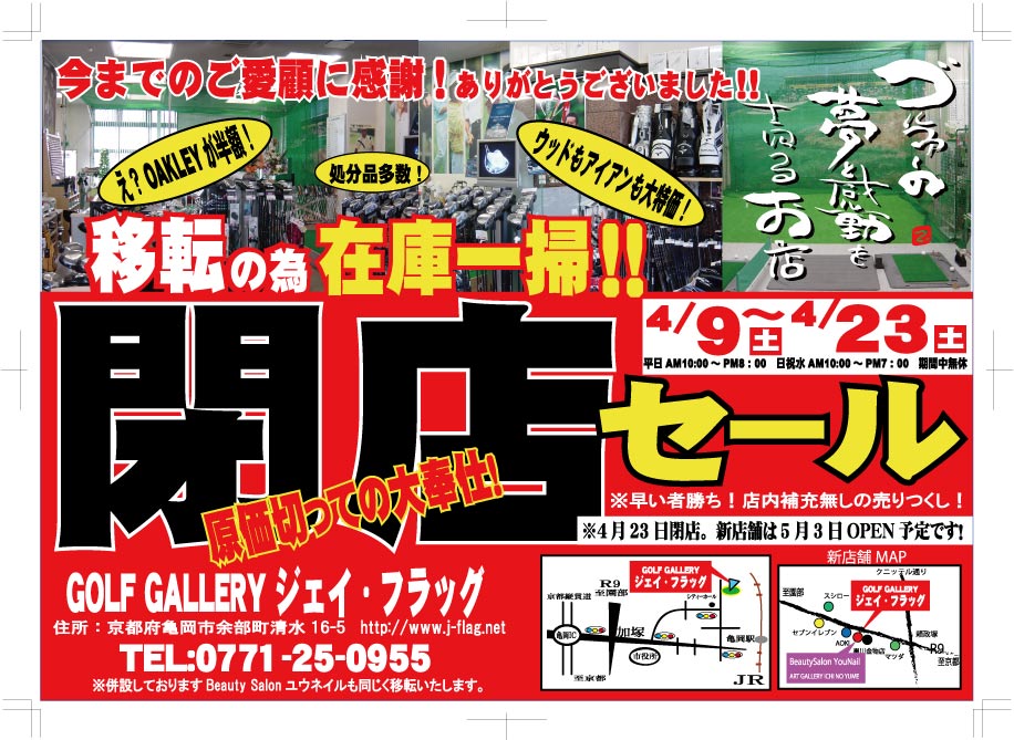 Ĺ¤é¤¯¤´°¦¸Ü¤¤¤¿¤À¤¤Þ¤·¤¿¡¢GOLFGALLERY¥¸¥§¥¤¡¦¥Õ¥é¥Ã¥°¤Ï4·î23Æü¤ò¤â¤Ã¤ÆÊÄŹ¤µ¤»¤Æ¤¤¤¿¤À¤¤Þ¤¹¡£