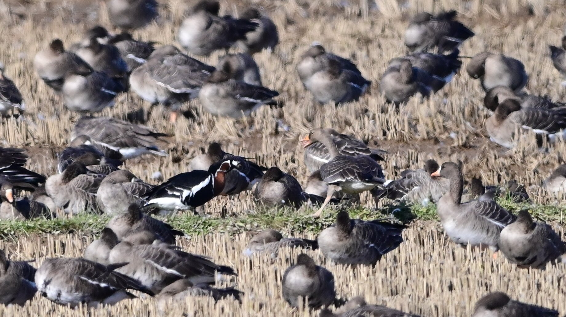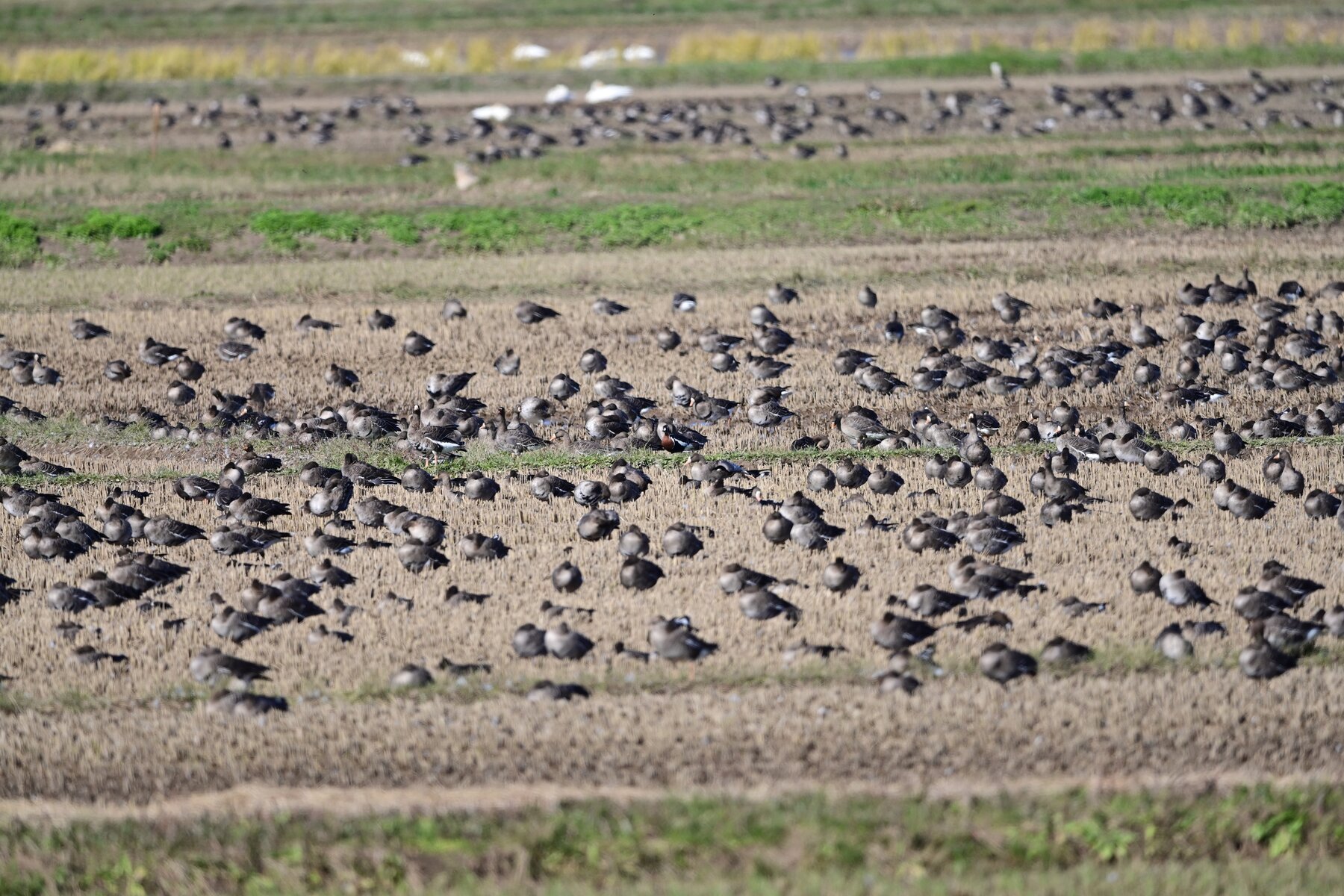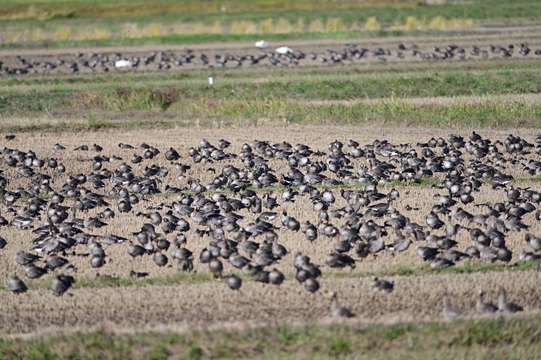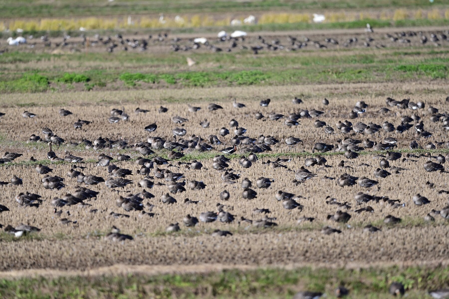 9万羽のマガンに混じっている一羽 10月上旬には来ていたそうですが、かなかな一般の目には触れてなかったようです