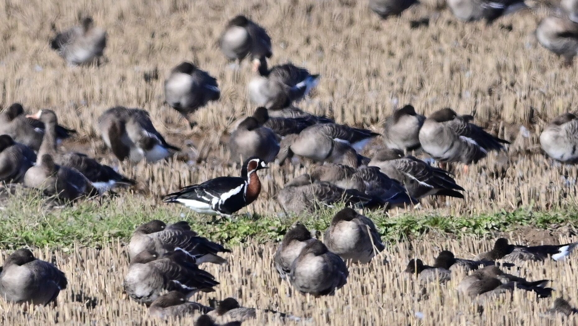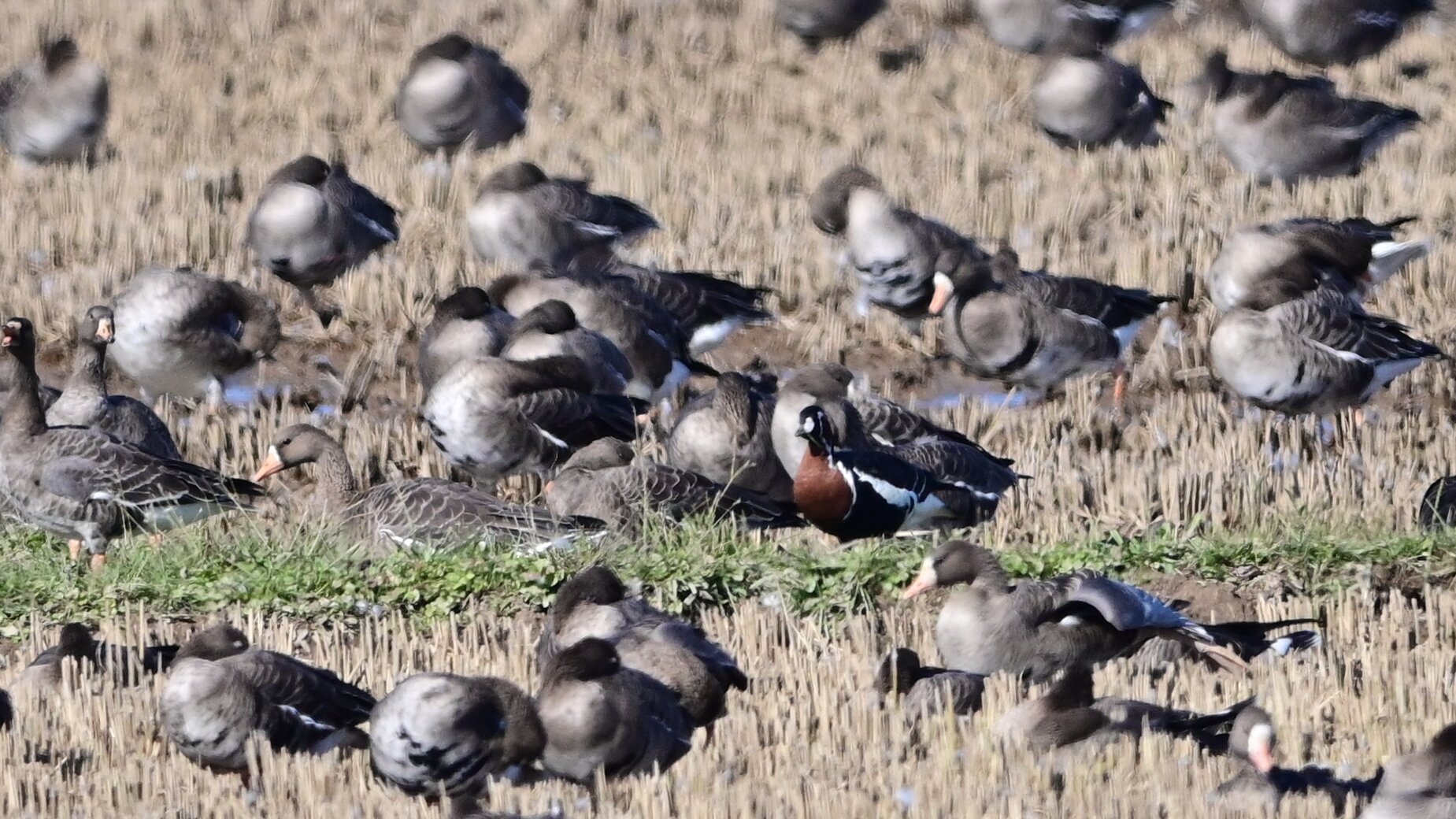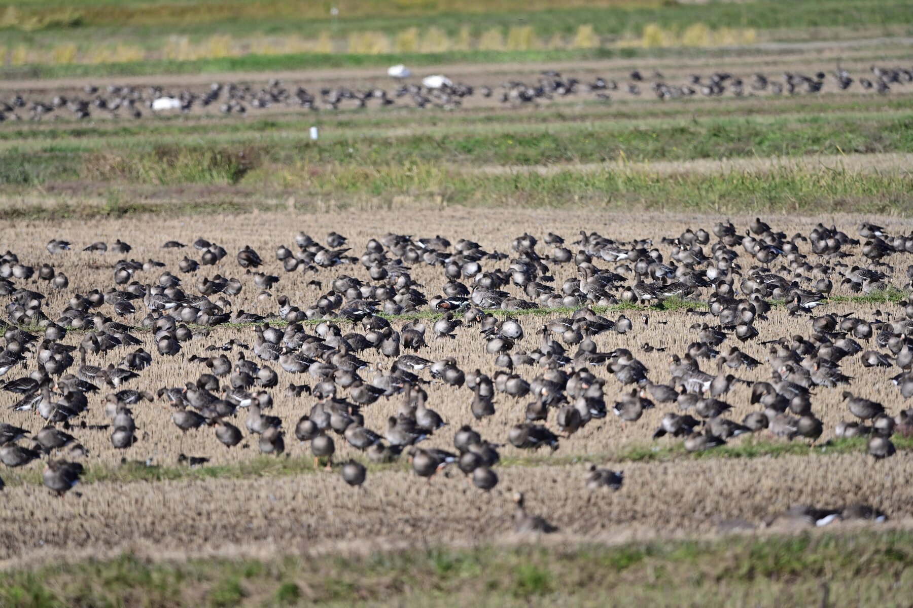 9万羽のマガンに混じっている一羽 10月上旬には来ていたそうですが、かなかな一般の目には触れてなかったようです