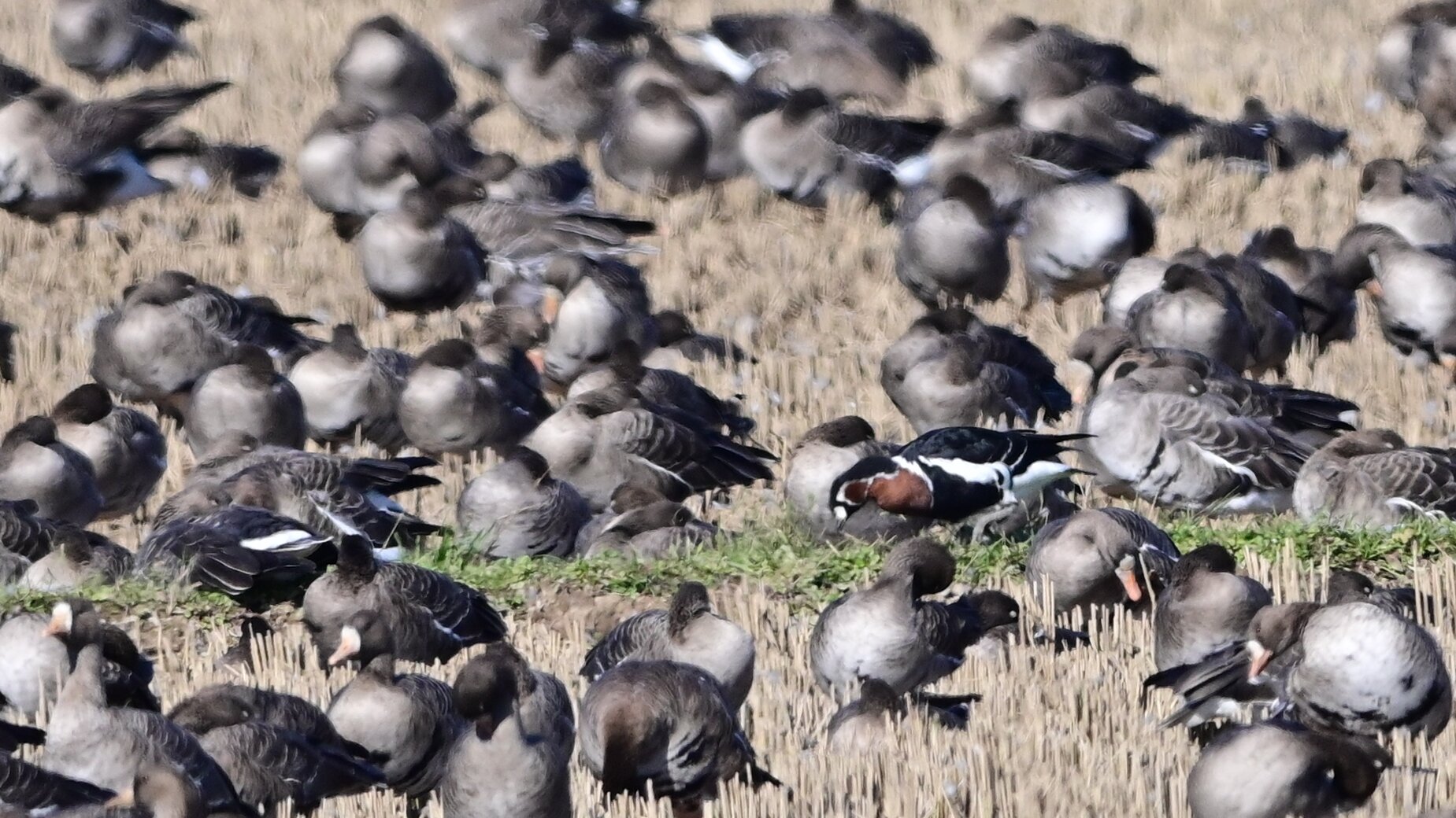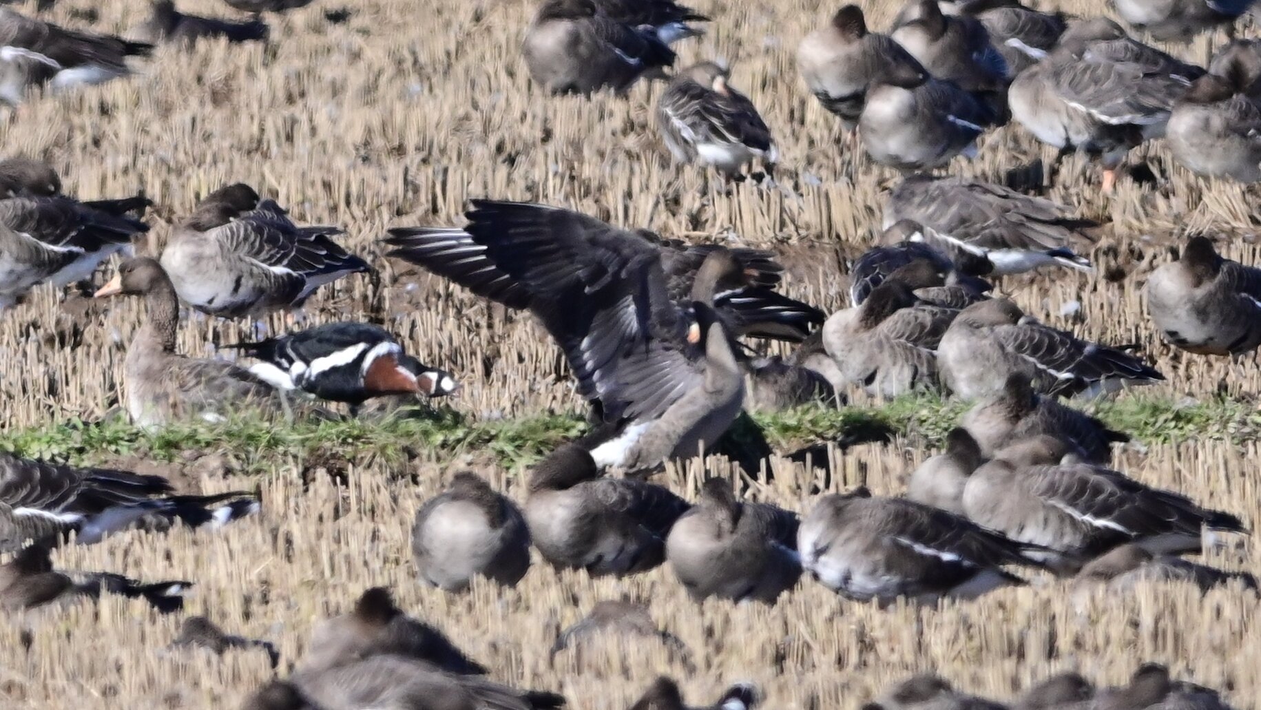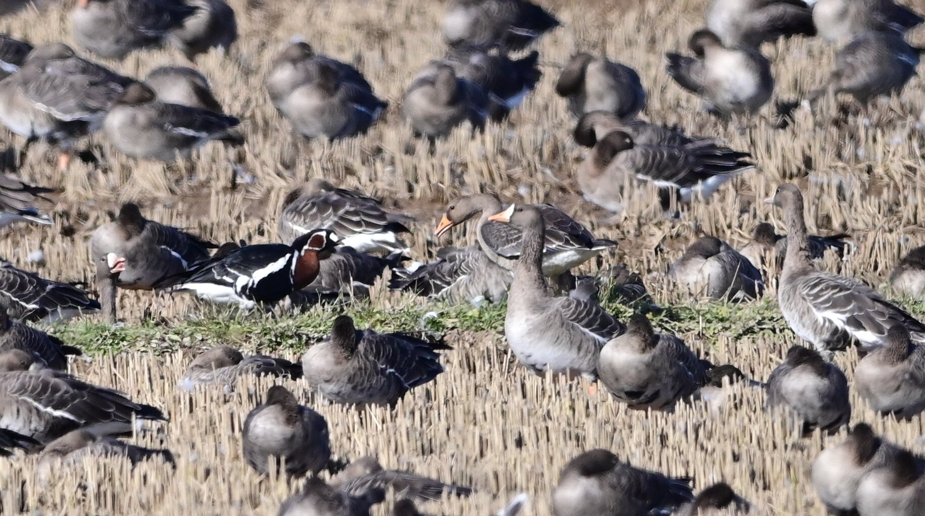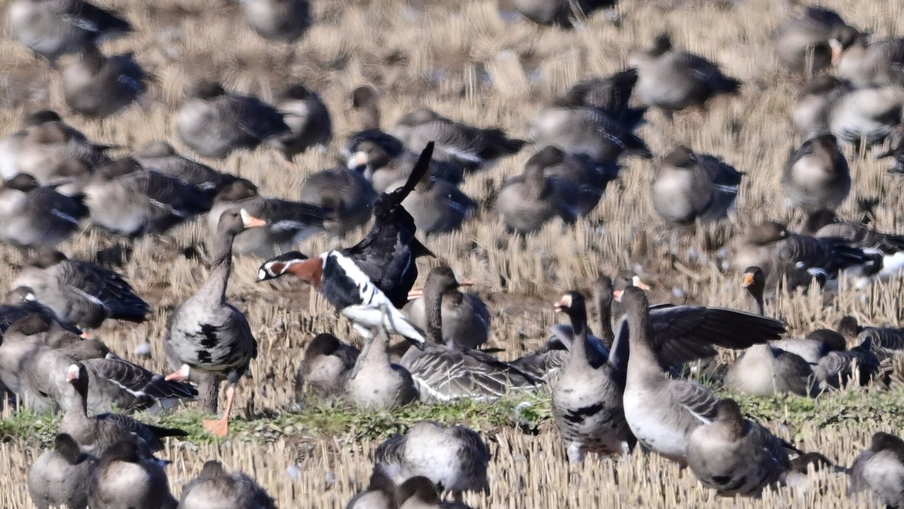 9万羽のマガンに混じっている一羽 10月上旬には来ていたそうですが、かなかな一般の目には触れてなかったようです