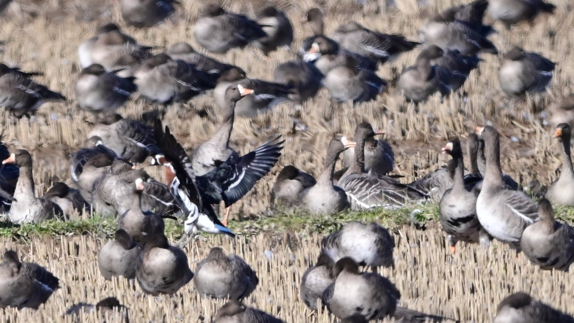 羽ばたいてるマガンの前にいますがお分かりですか