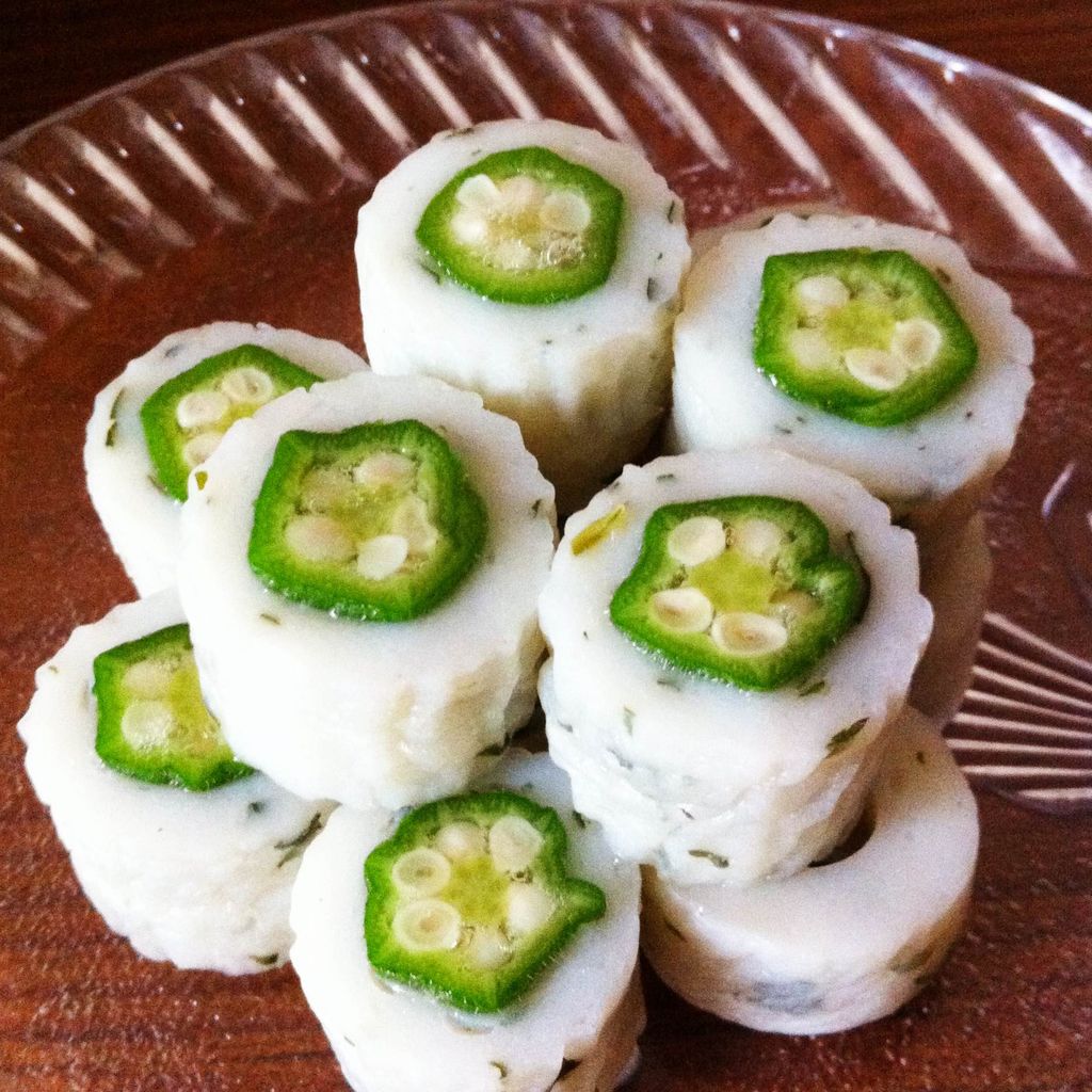 しそ竹輪に茹でたおくらを詰め込み・・