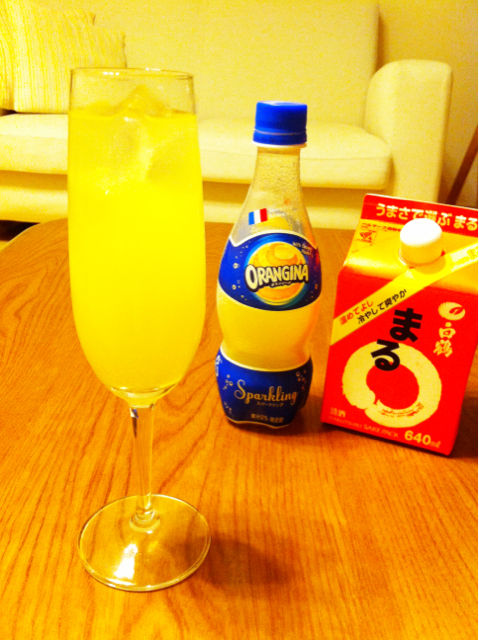 日本酒のオランジーナ割り。