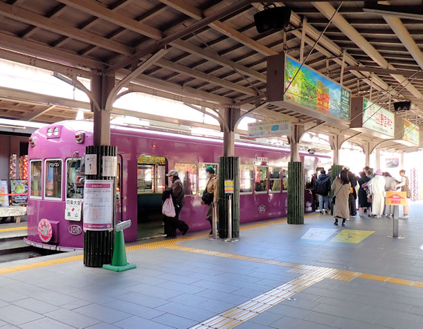 山科は京都の東端、嵐山は西端ですが、交通の便が良くて、乗り換え1回40分で嵐山に到着します。