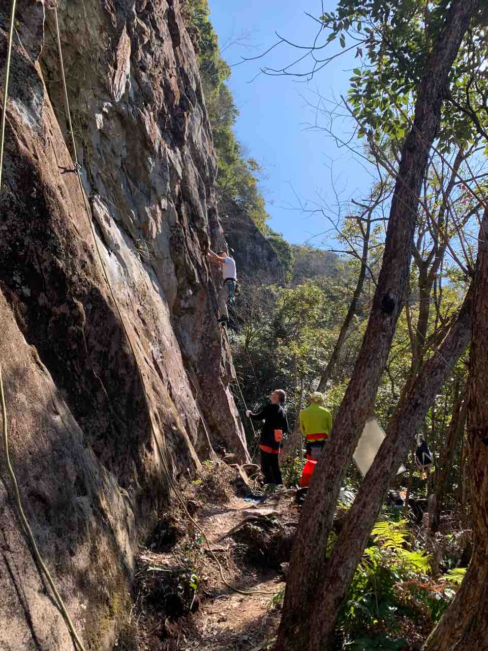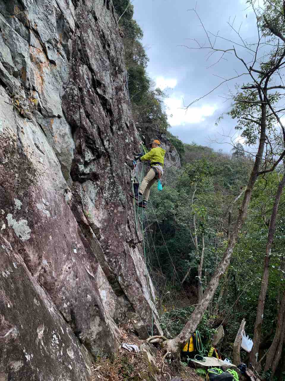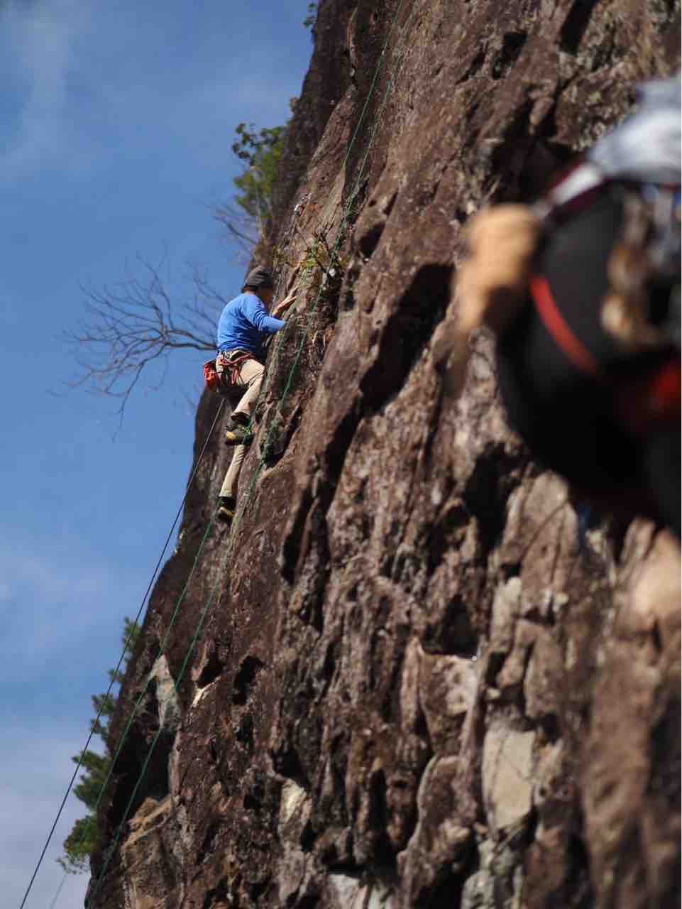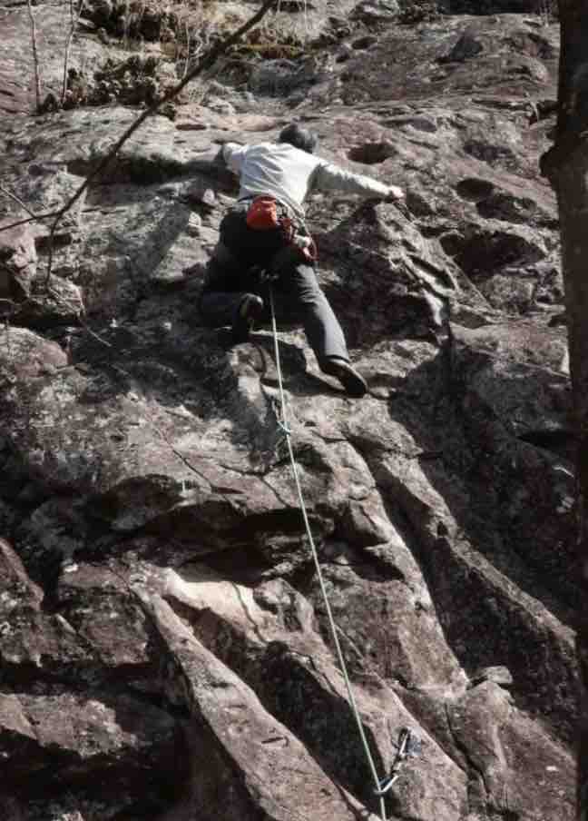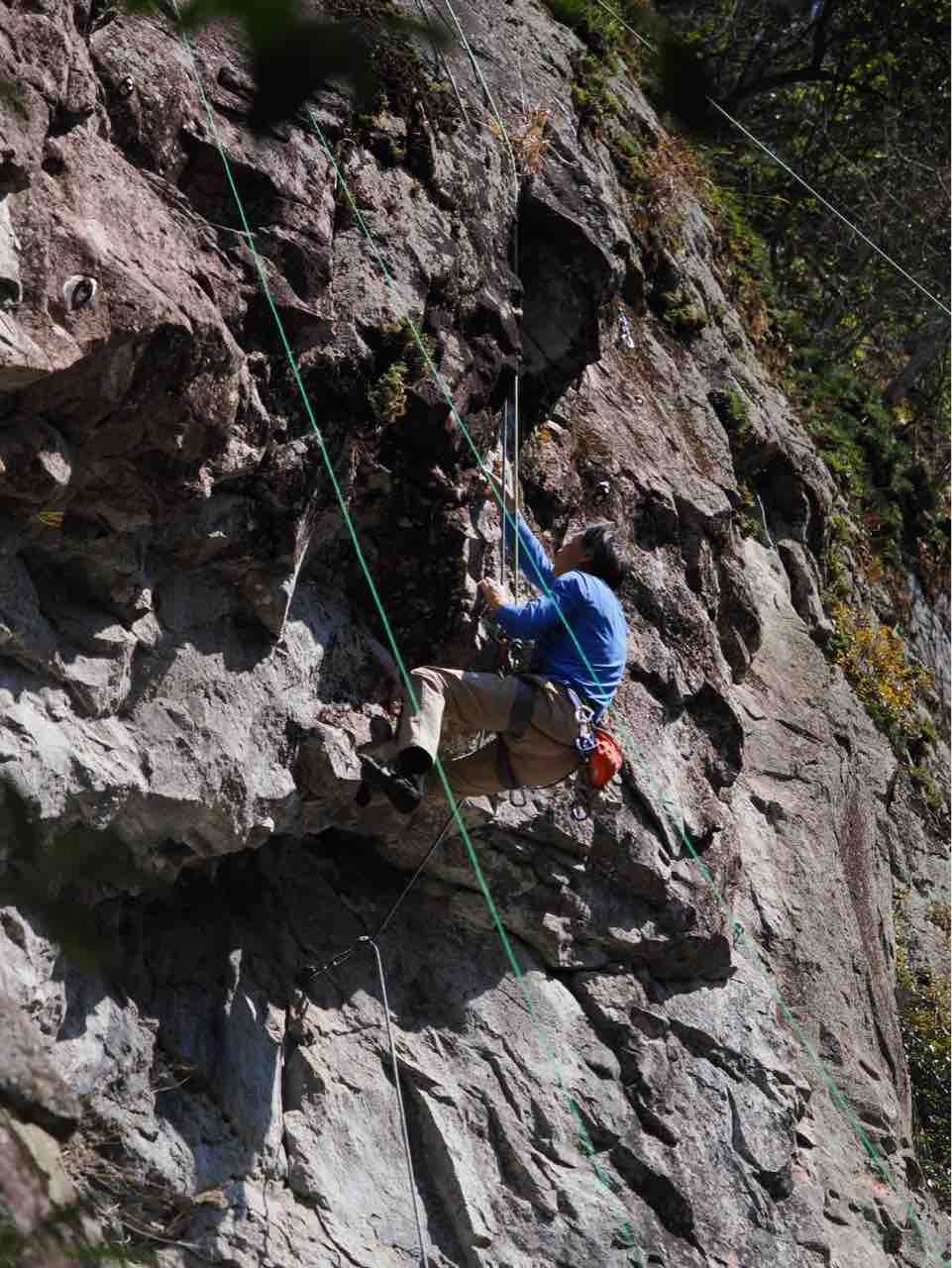 午前中は、まずは、る氏と三階で登る。トモオカさんやホンカン、など十名。トンビ、椿六十郎、椿フェイス、椿カンテ、椿ハング、椿凹角、侘助下部(上部はスズメバチの巣に近いので)、プロジェクト試登の8本。