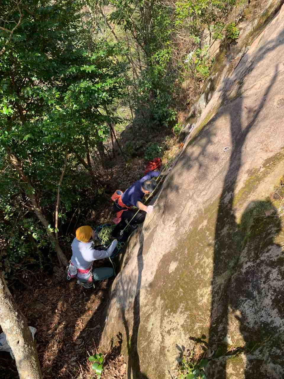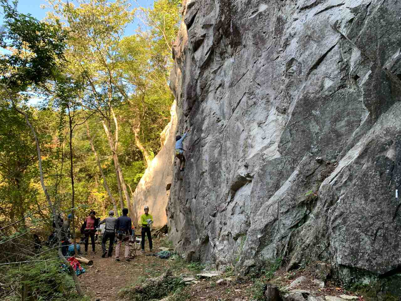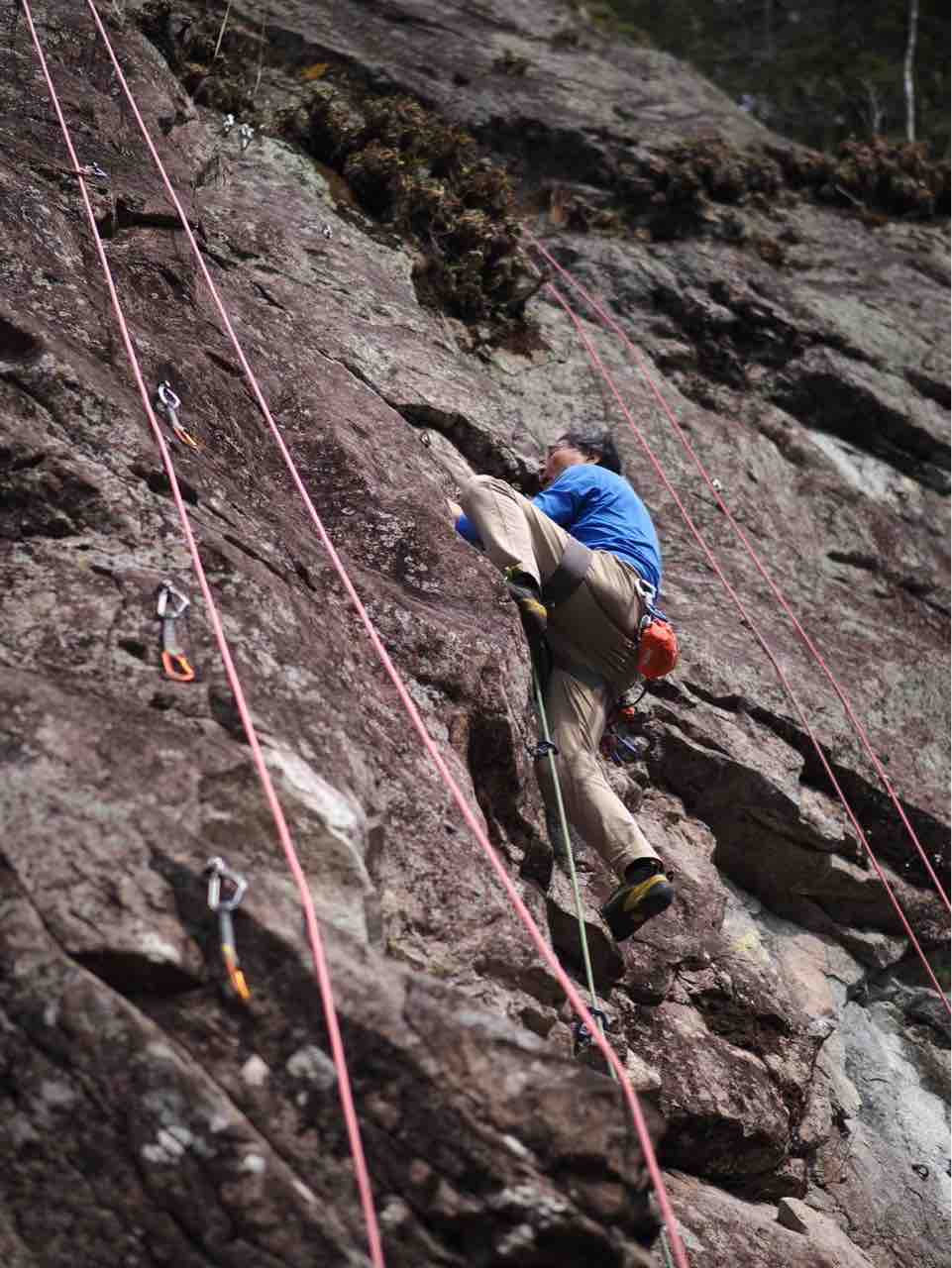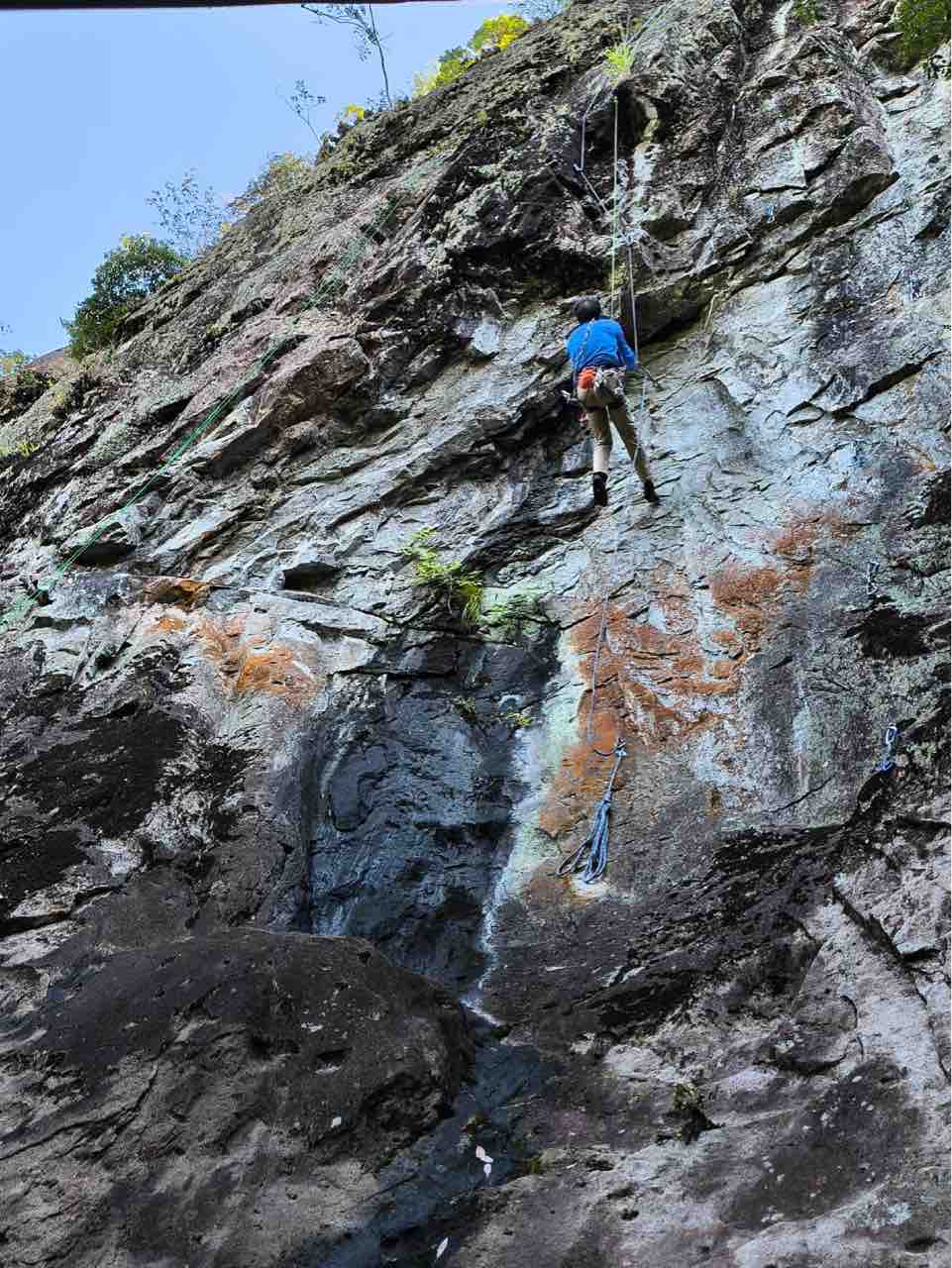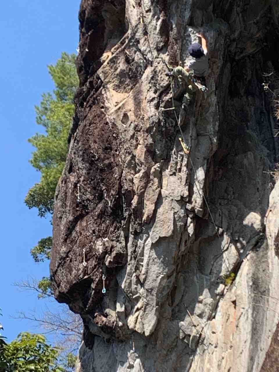 午前中は、まずは、る氏と三階で登る。トモオカさんやホンカン、など十名。トンビ、椿六十郎、椿フェイス、椿カンテ、椿ハング、椿凹角、侘助下部(上部はスズメバチの巣に近いので)、プロジェクト試登の8本。