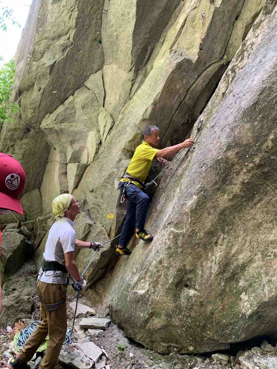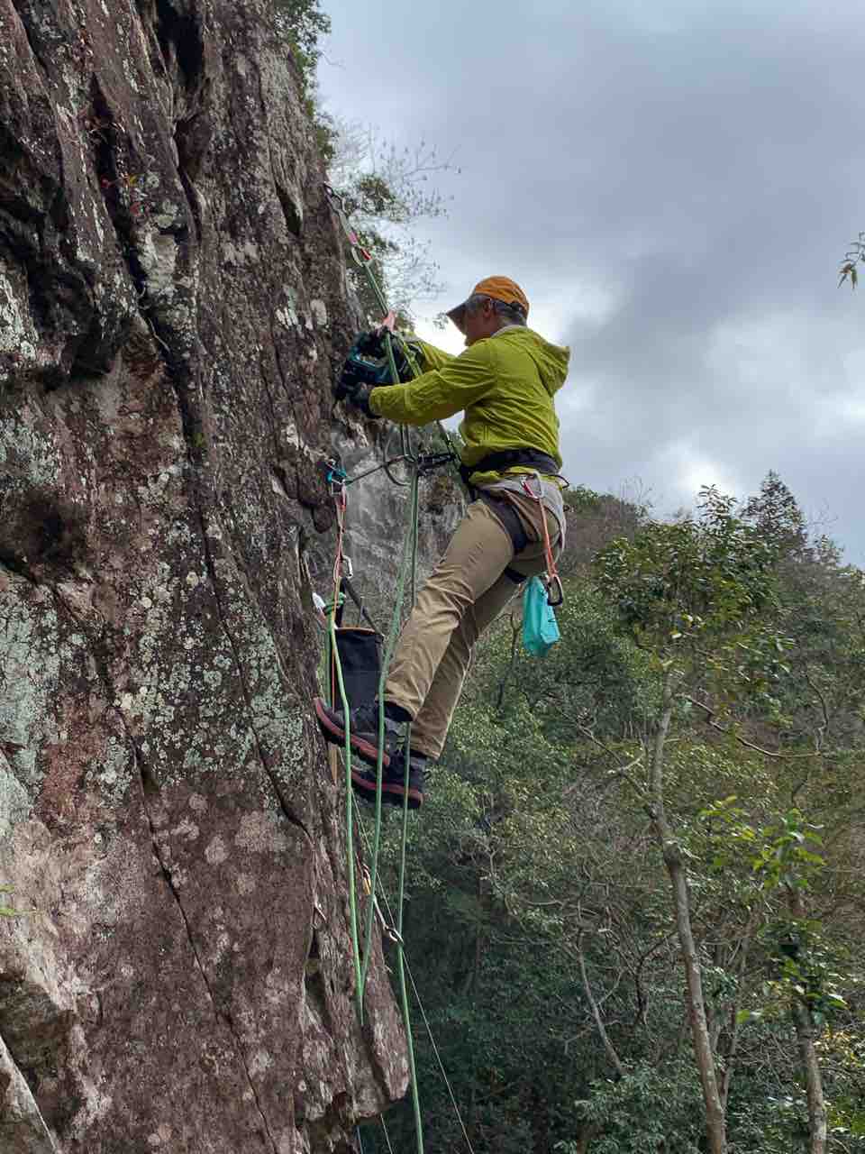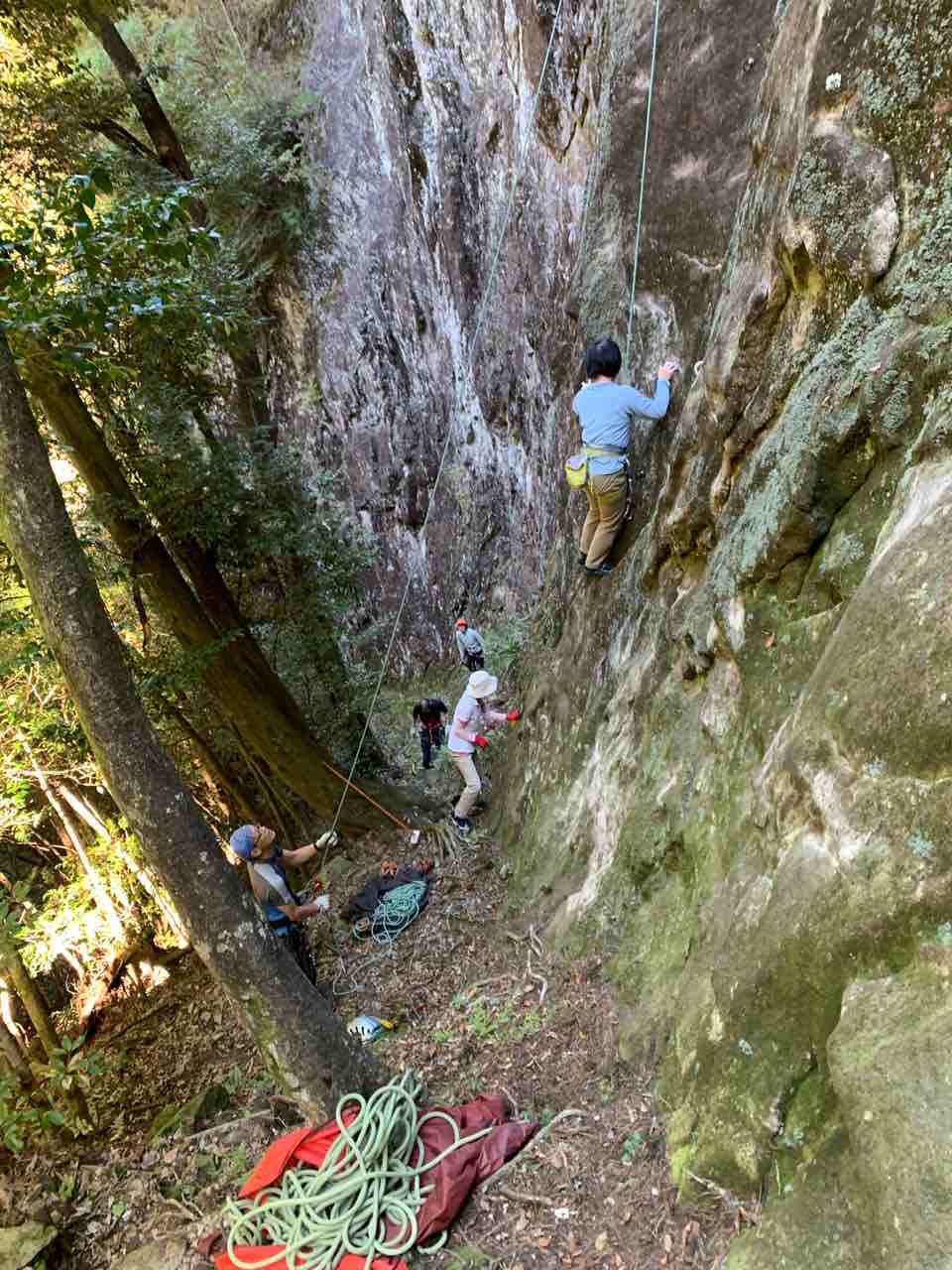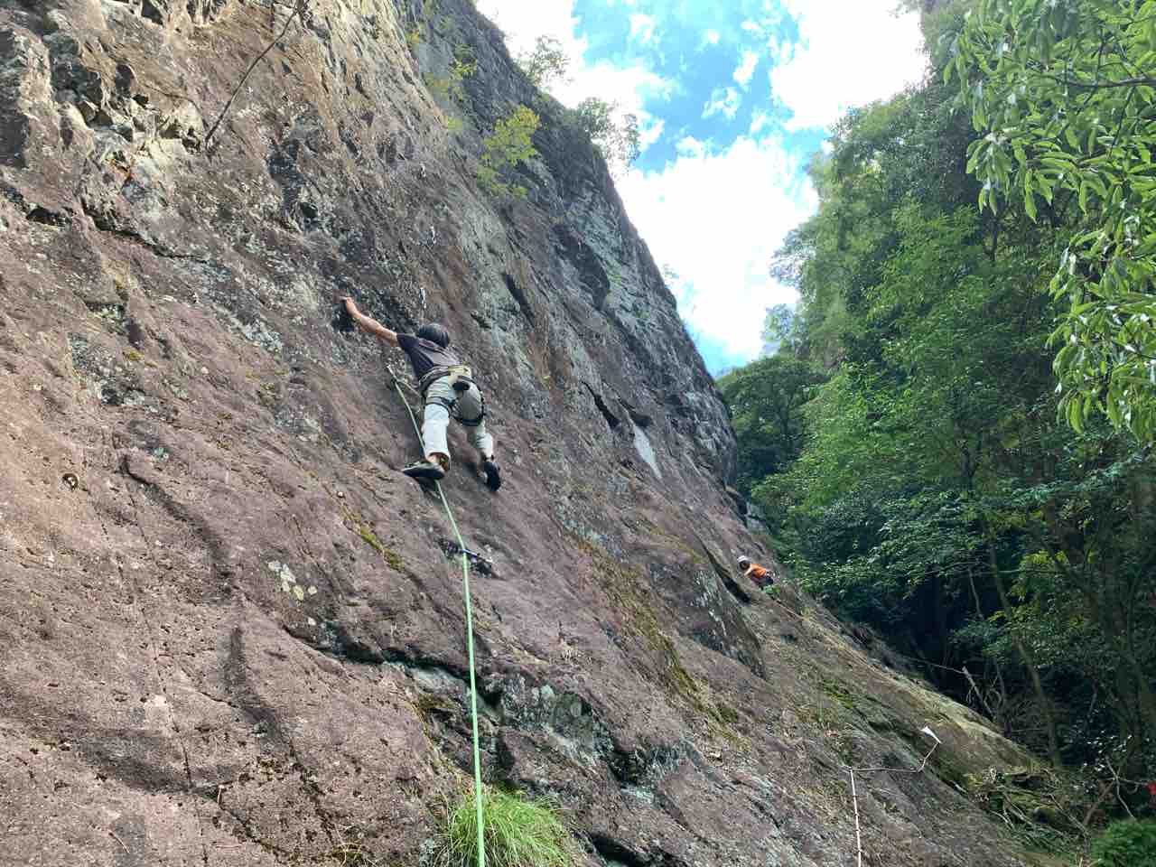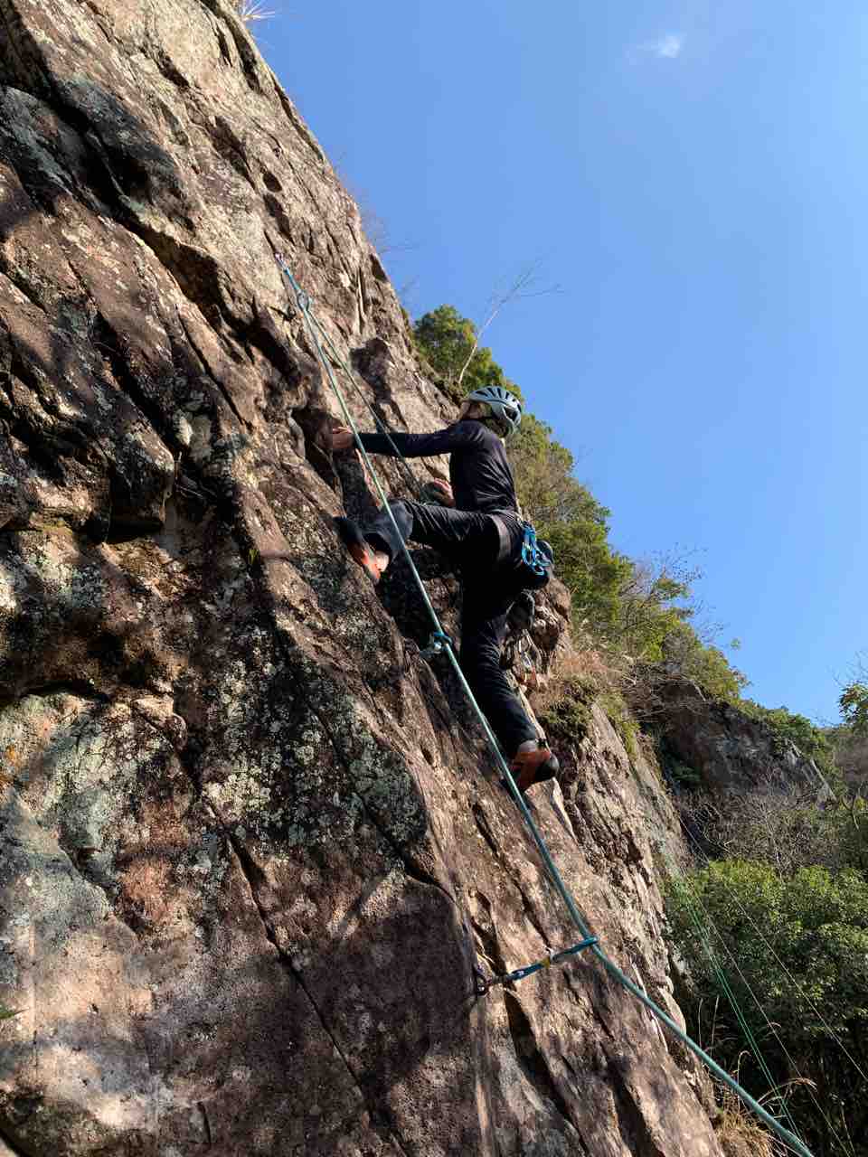 午前中は、まずは、る氏と三階で登る。トモオカさんやホンカン、など十名。トンビ、椿六十郎、椿フェイス、椿カンテ、椿ハング、椿凹角、侘助下部(上部はスズメバチの巣に近いので)、プロジェクト試登の8本。
