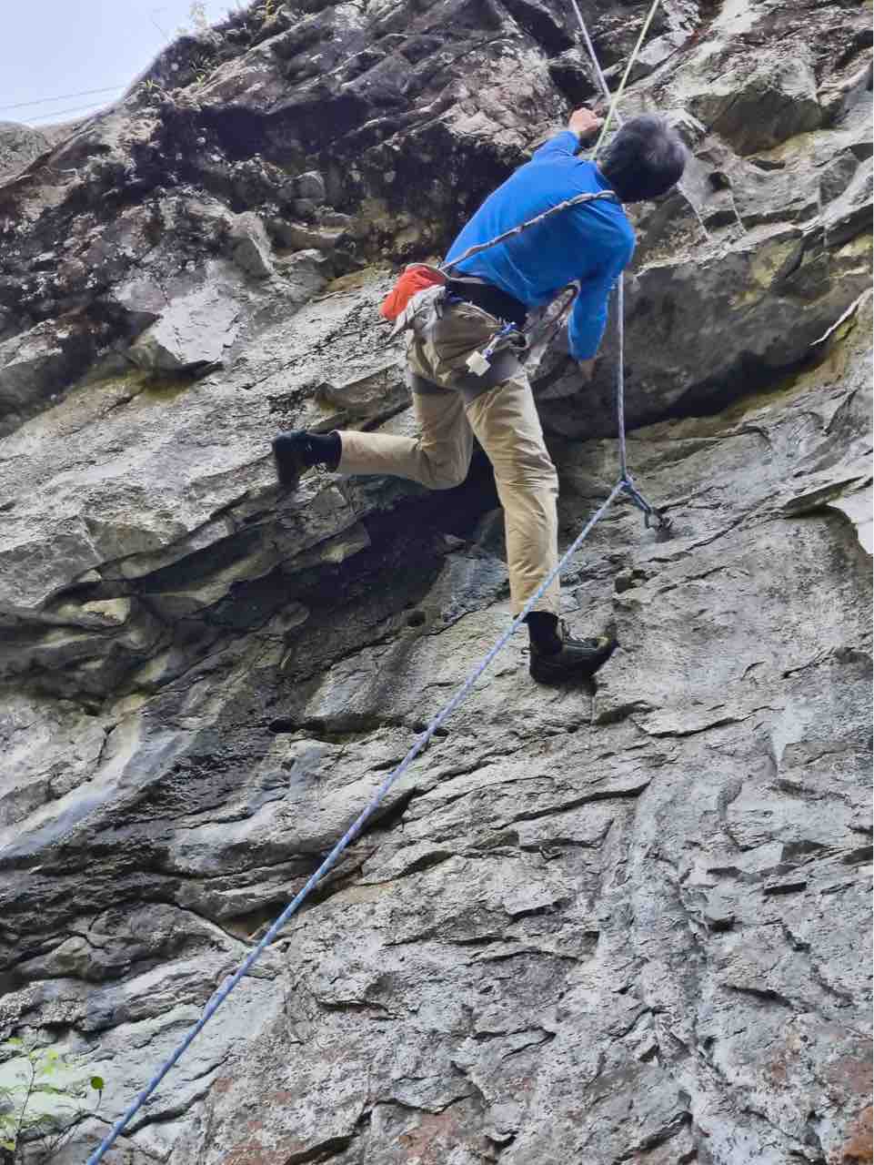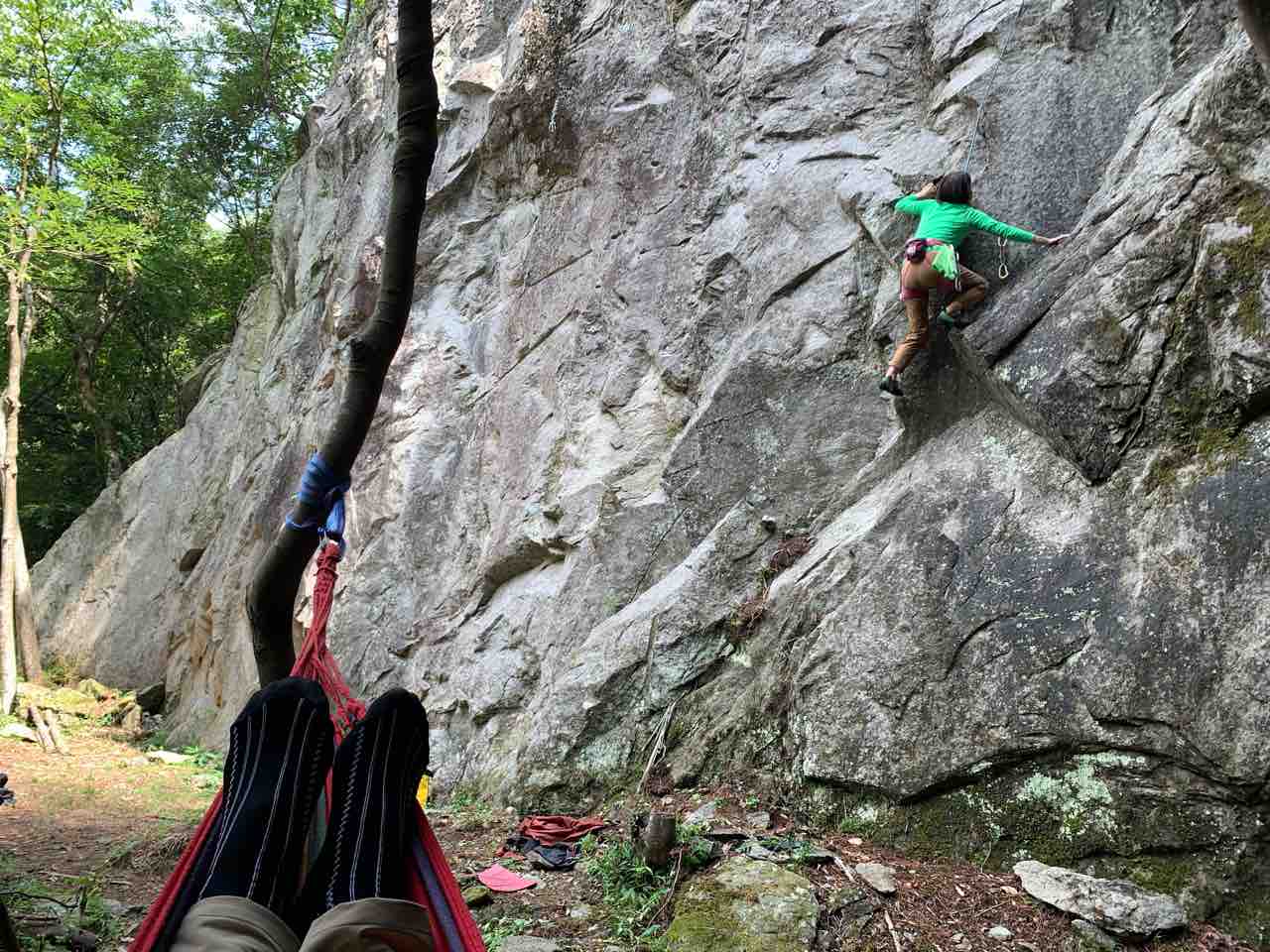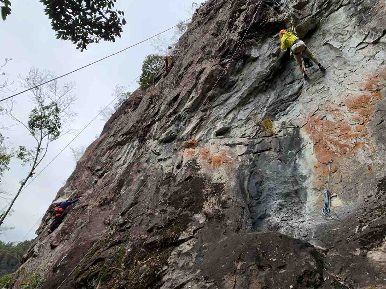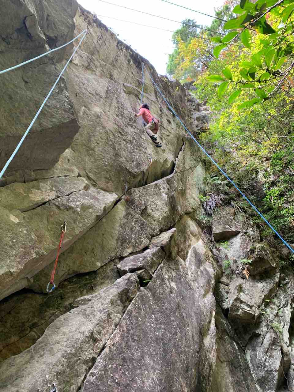 午前中は、まずは、る氏と三階で登る。トモオカさんやホンカン、など十名。トンビ、椿六十郎、椿フェイス、椿カンテ、椿ハング、椿凹角、侘助下部(上部はスズメバチの巣に近いので)、プロジェクト試登の8本。