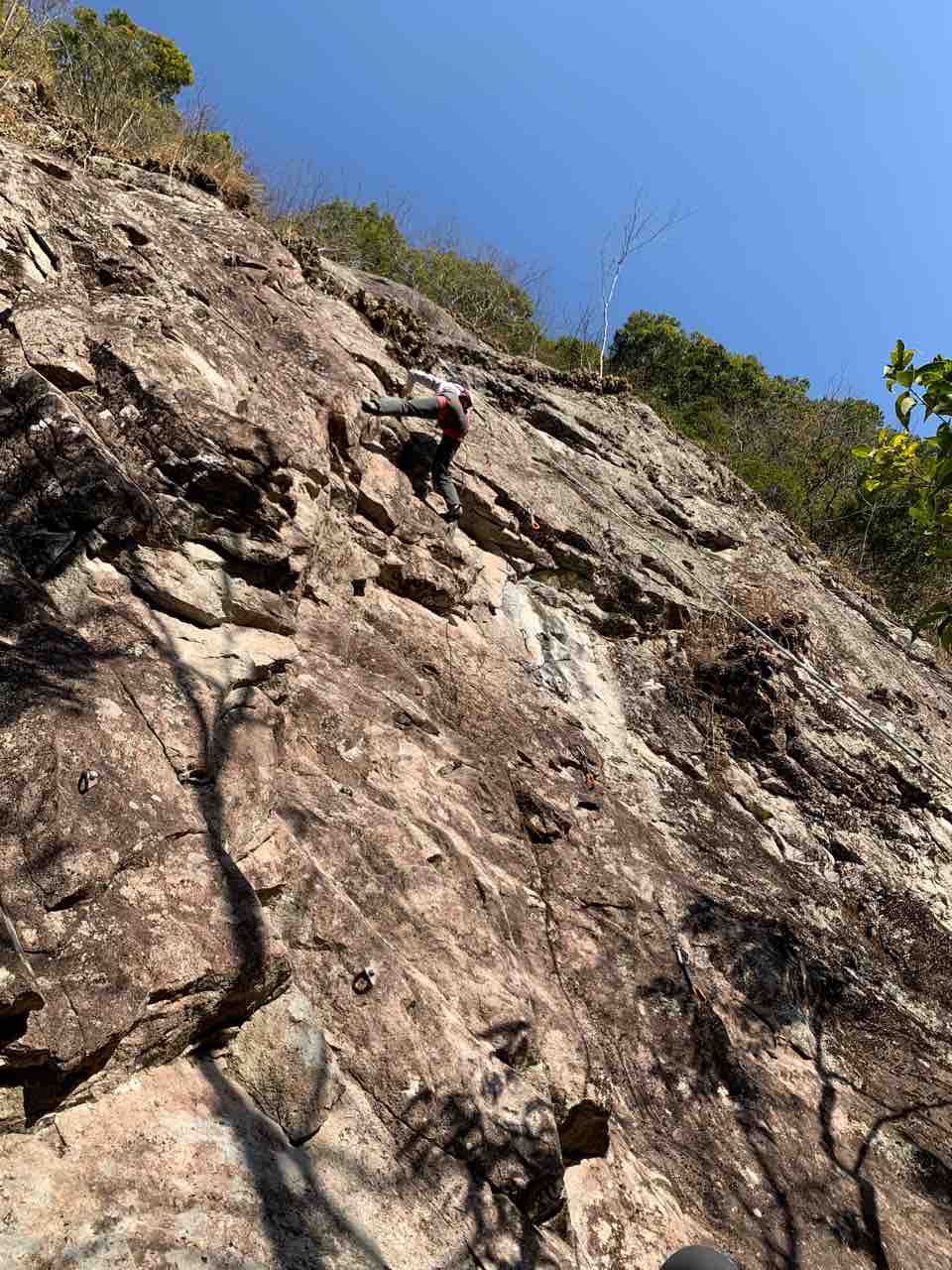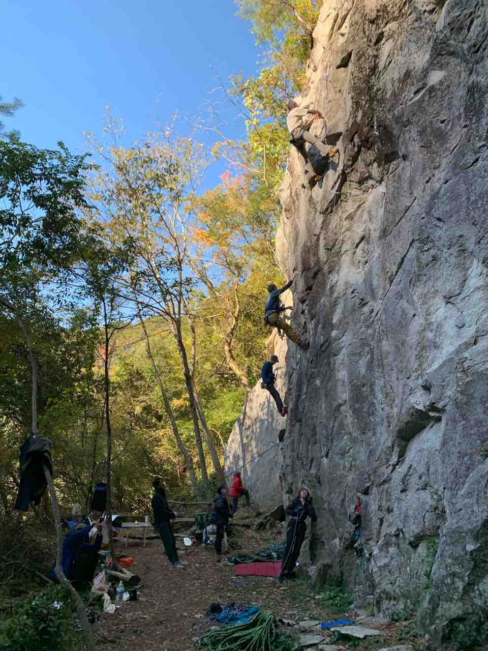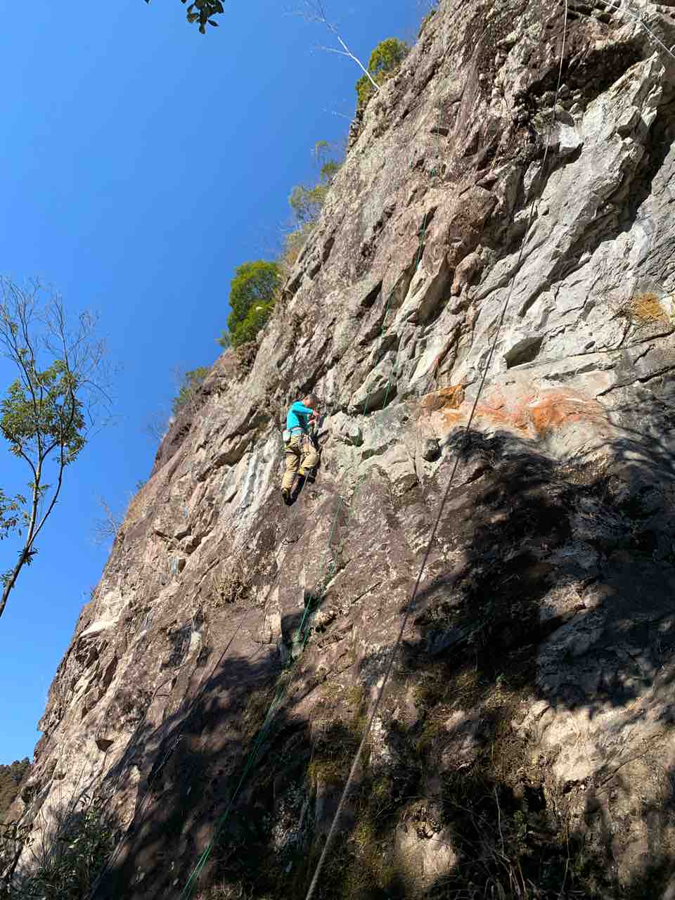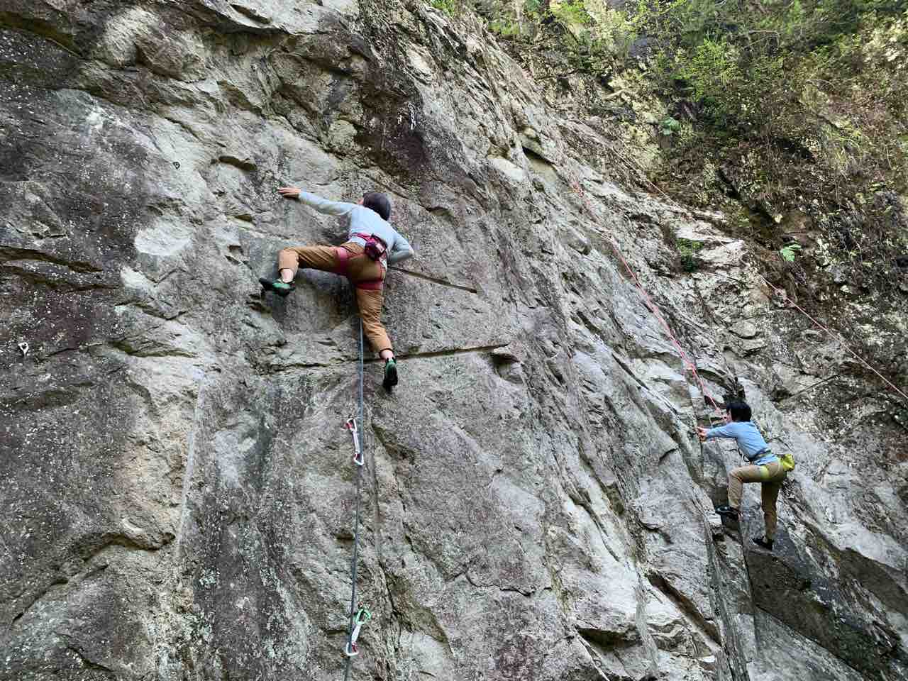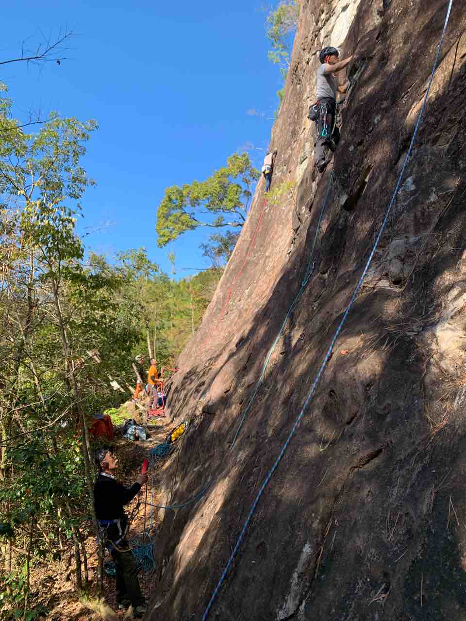 午前中は、まずは、る氏と三階で登る。トモオカさんやホンカン、など十名。トンビ、椿六十郎、椿フェイス、椿カンテ、椿ハング、椿凹角、侘助下部(上部はスズメバチの巣に近いので)、プロジェクト試登の8本。