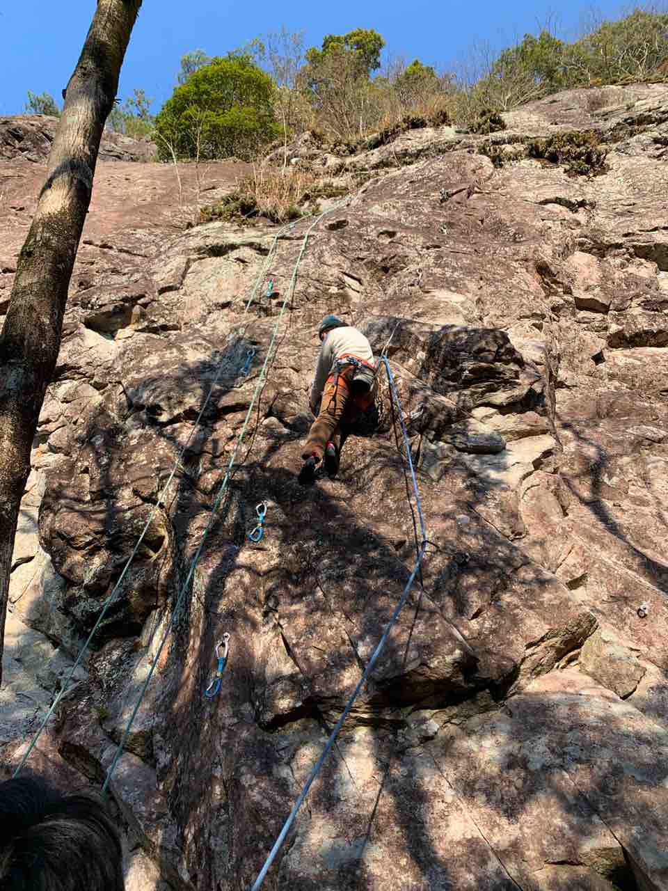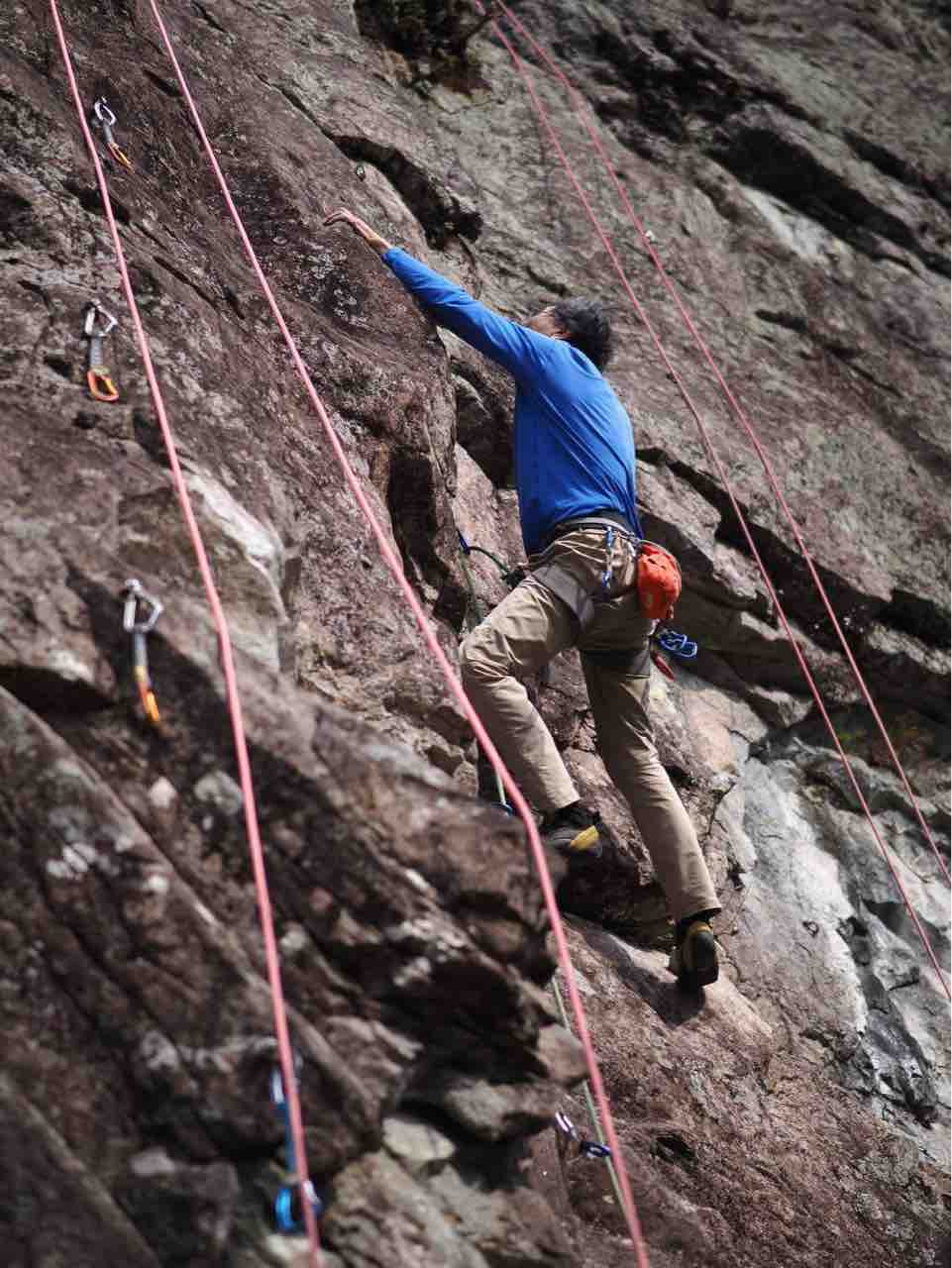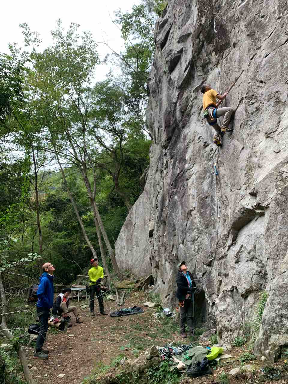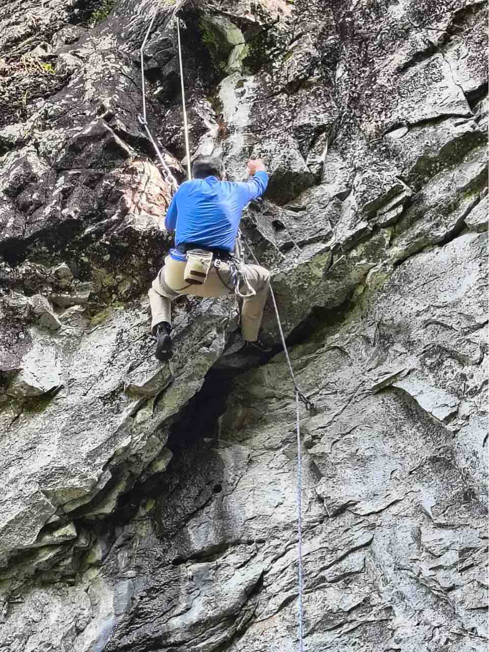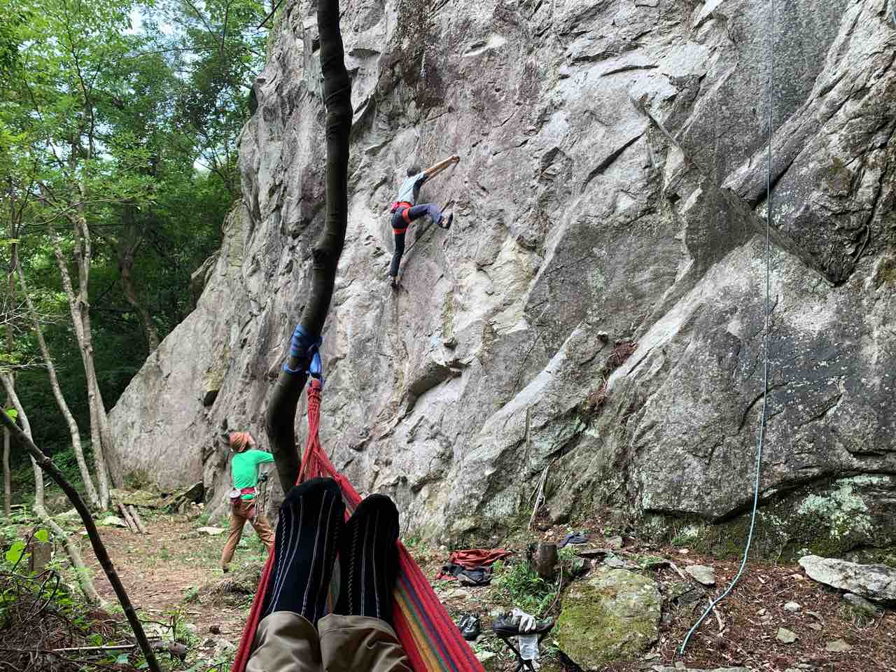 午前中は、まずは、る氏と三階で登る。トモオカさんやホンカン、など十名。トンビ、椿六十郎、椿フェイス、椿カンテ、椿ハング、椿凹角、侘助下部(上部はスズメバチの巣に近いので)、プロジェクト試登の8本。