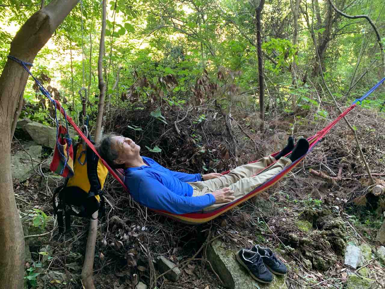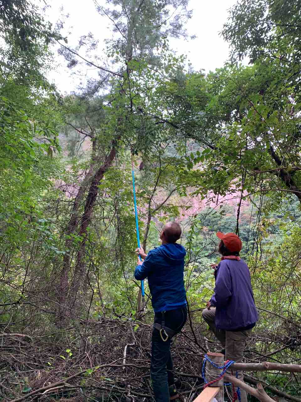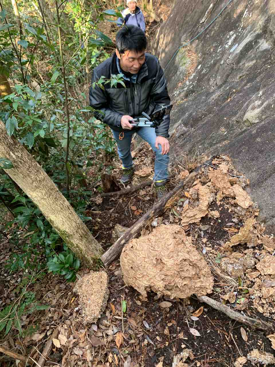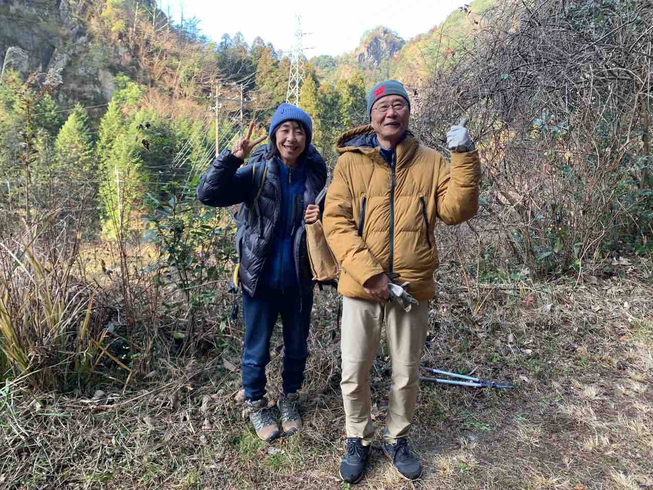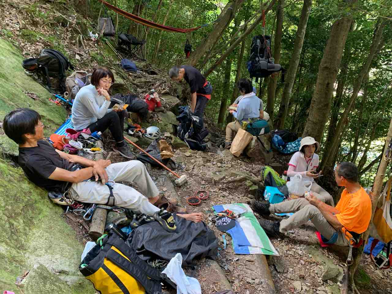 ヤマサキ夫妻、イノクチ夫妻、イケダさん、ハラグチさんと。隧道エリアにヤマサキさんがアクリルテーブル設置。昼食時にアケビ取りに興じる大人たちが。
