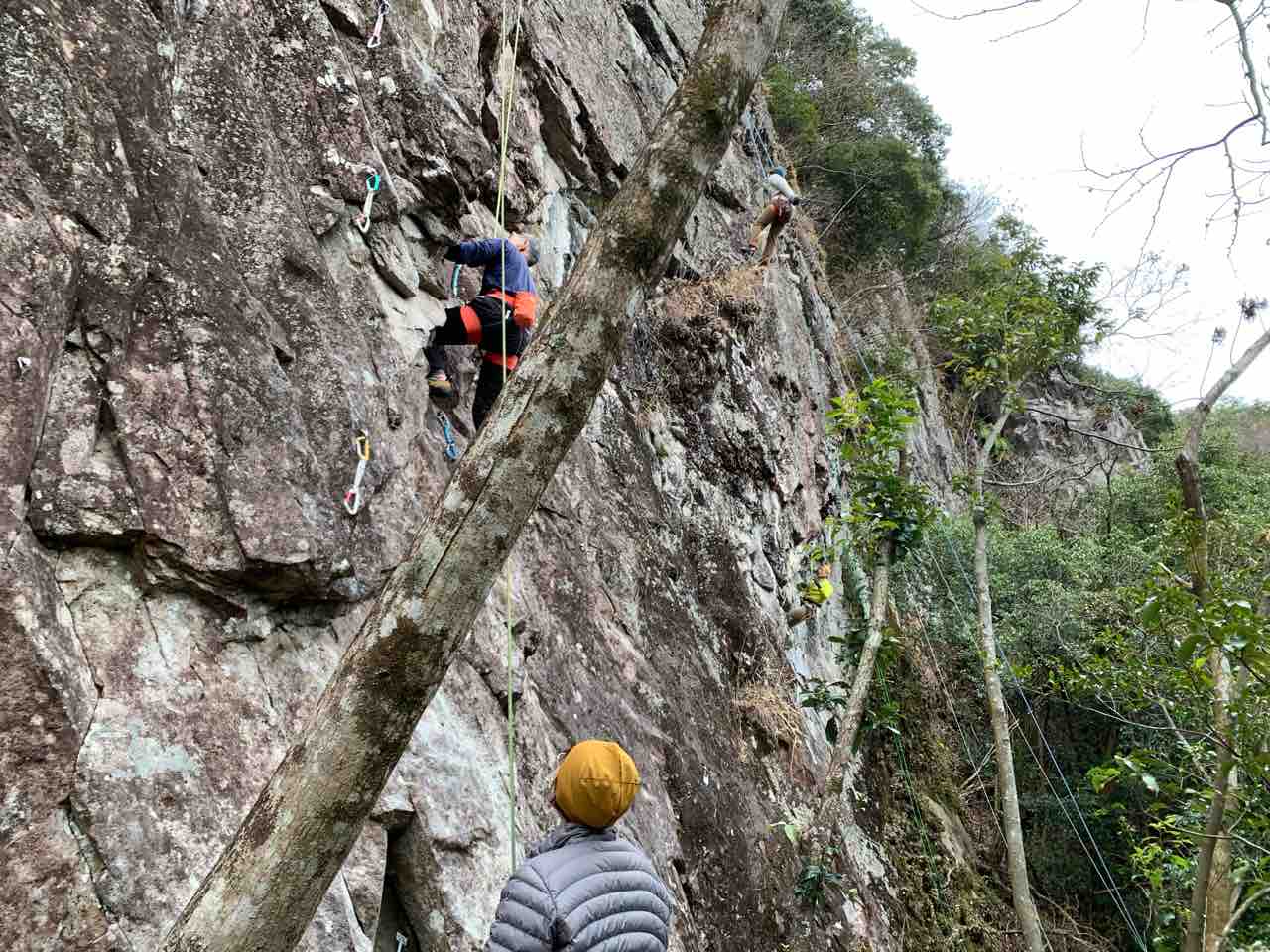 その後お昼に隧道エリアへ。ヤマサキ夫妻、イノクチ夫妻、ヤマシタ先生とイシマツさん、キャンプしてた方々、いっせいさん、ナカさんペアなどで賑わっていた。いっせいさんの新ルート、冬の猛禽5.11aで2テン。