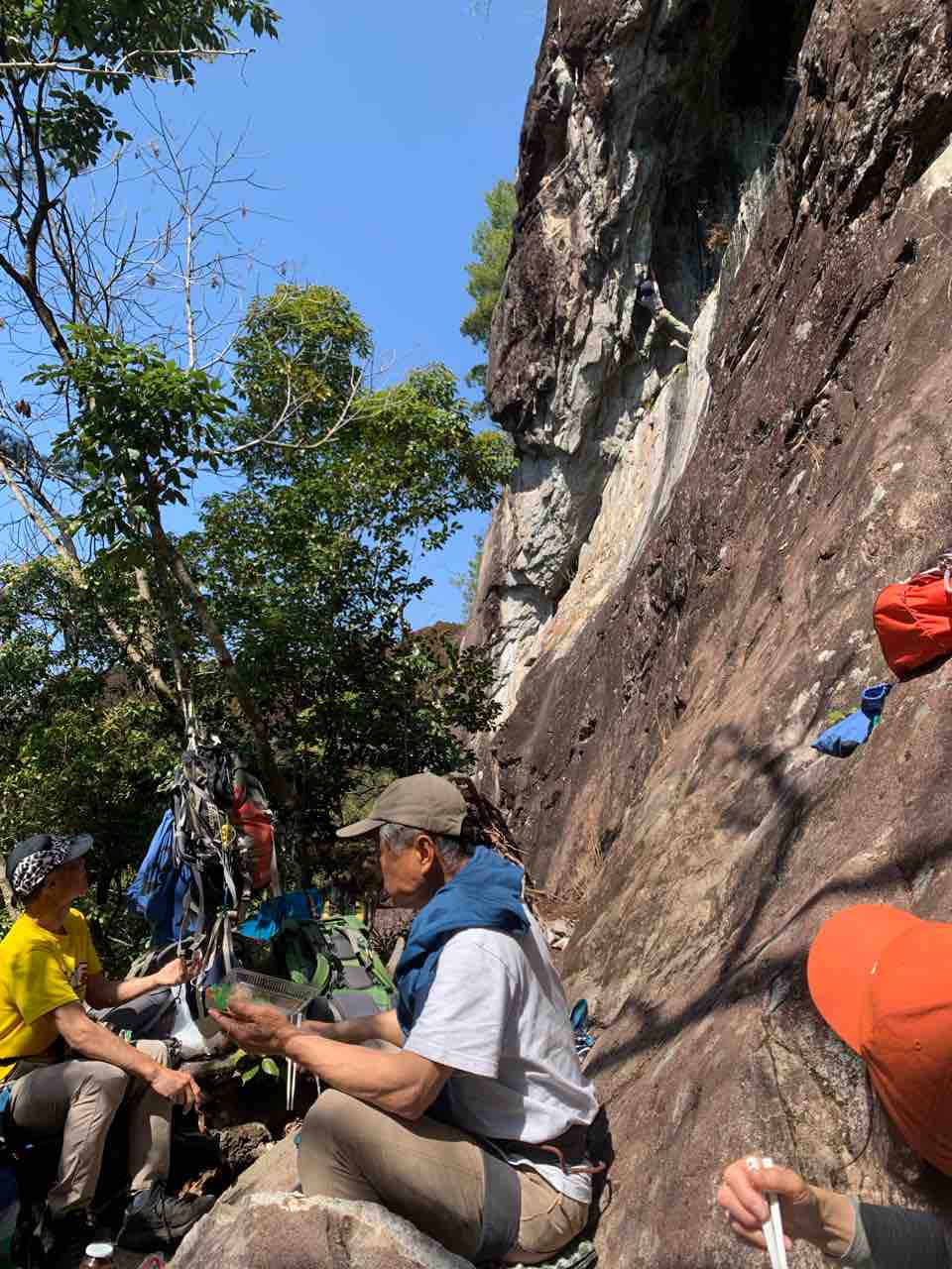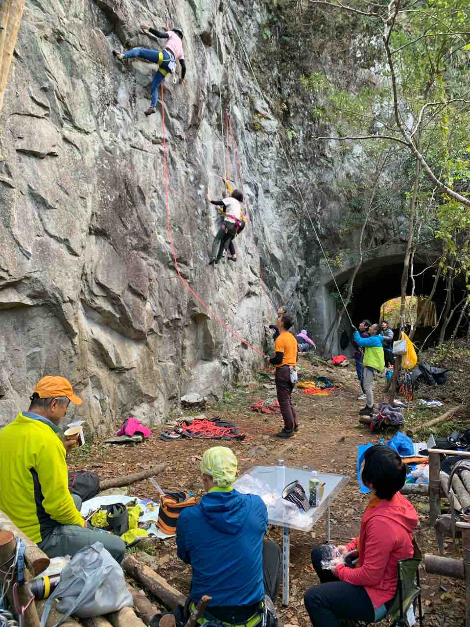 隧道エリアに行くとアオイさん、タサキさん、ハシモトさんが前泊していた。三階の日向で登る。ヤマサキさんがプロジェクトの浮石を撤去してくださる。お昼に隧道に戻るとユキエさん、ハラグチさん、イノクチ夫妻、ヤマシタ先生とイシマツさん、オガタさんとそのお連れなどで賑わっている。