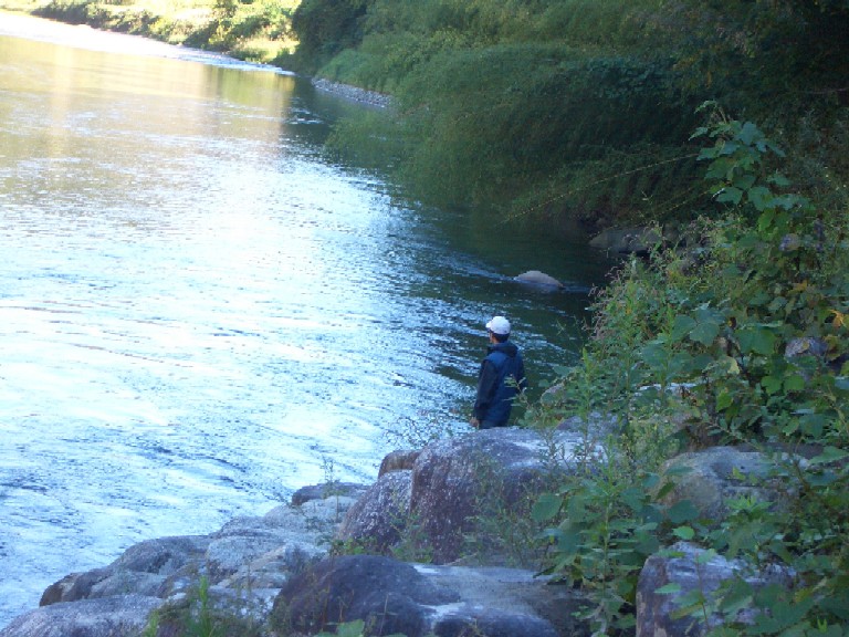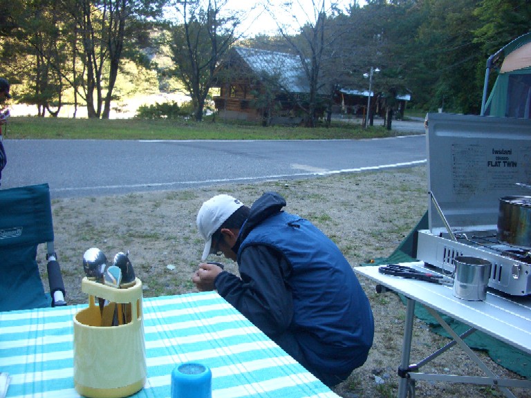 私が朝食の用意をしてる間、やじおは釣りの準備。。でも、川釣りって、もうしちゃいけない時期じゃないのかな?