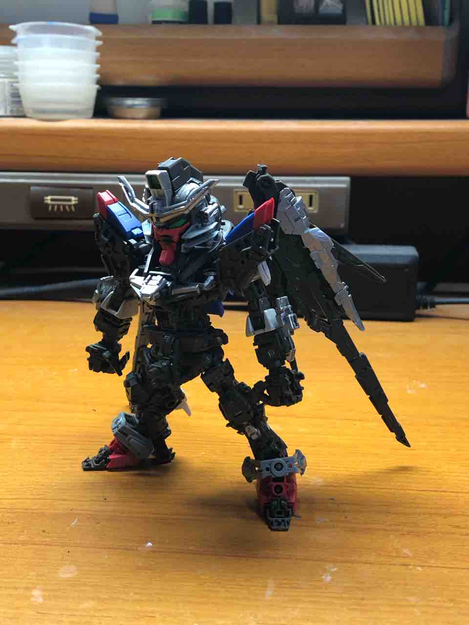 さて、腰とついでにバックパック基部も外装を着せて、ようやっとスタンダップ二回目である。