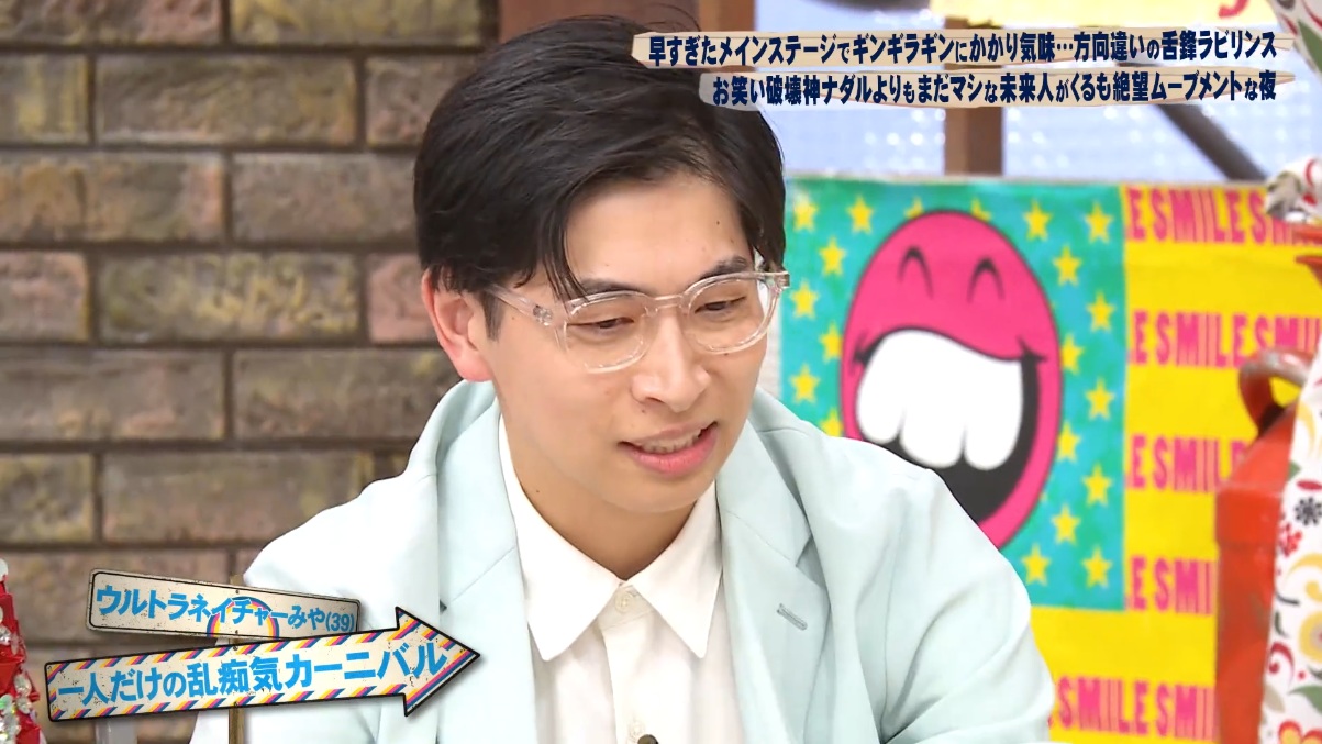 M-1準々決勝動画ざっと目を通しました。一番笑ったのはピ夜でしたが、まあそこは置いといて、十九人の陰謀論なネタがまっすぐ面白かったです。あと華山のあの感じが味になってきていて面白かった。ただ、こっちも陰謀論なオチ。今年のトレンドみたいになってましたね。トリを務めたのは男ブラなラパルフェ。投票集計前にラヴィットにも出ていたけどいいのか?w 運営がラパルフェへの投票は無効にしているのならいいですけどw あとキュウとか面白かったですけど、準決勝にこれで上がれないのかと思った組はほとんどいなかったかなぁ・・・。準決勝に上がるということは決勝でネタ披露してるところも想像できるということですけど。去年もそう思ったような・・・?準決勝の面子もだいぶ一新された印象ですけど、詰まってた実力者たちがいなくなっただけでないことを祈りたい。