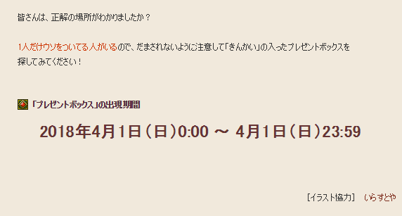 今日中のイベントどわね。エイプリルフールだから当たり前どわかね(・∀・)