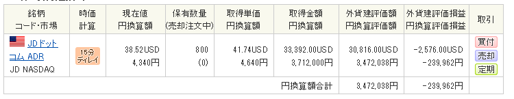 | 銘柄名 | 購入価格 | 株式数 | 保有額 |