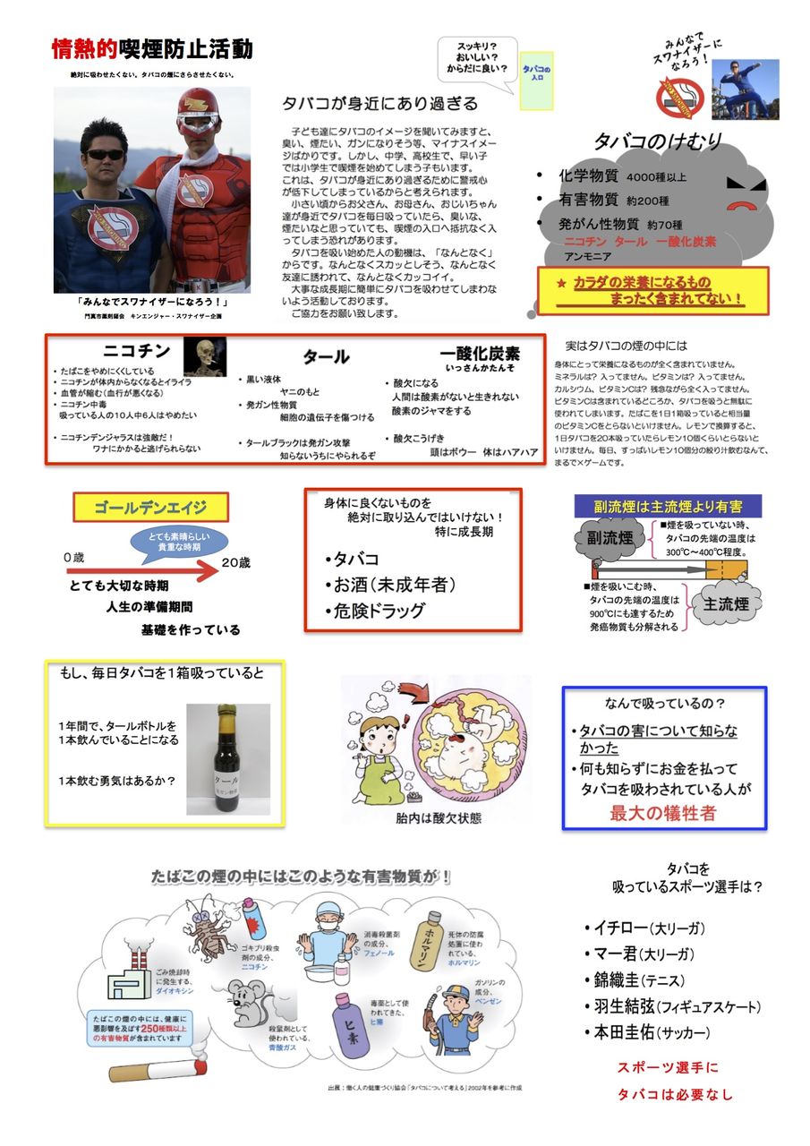 喫煙防止、禁煙推進(支援)、受動喫煙防止を訴えてきました。