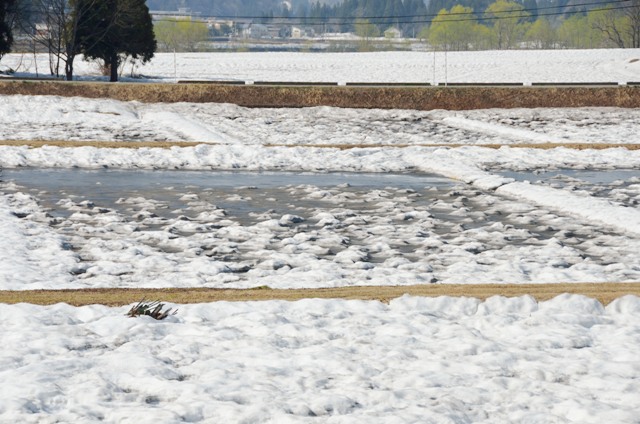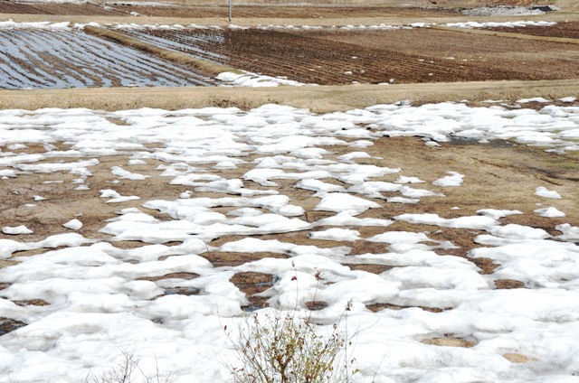 田んぼの雪はほぼ融けた。畑はもう一歩。