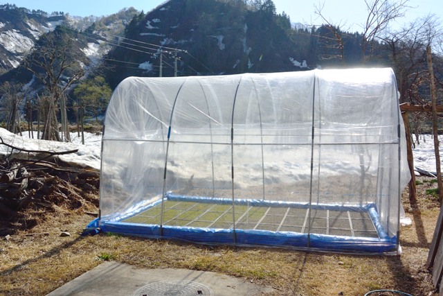 4/26 家の中で!発芽させた稲の育苗箱を外に出す。