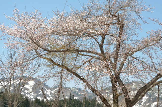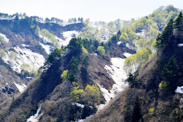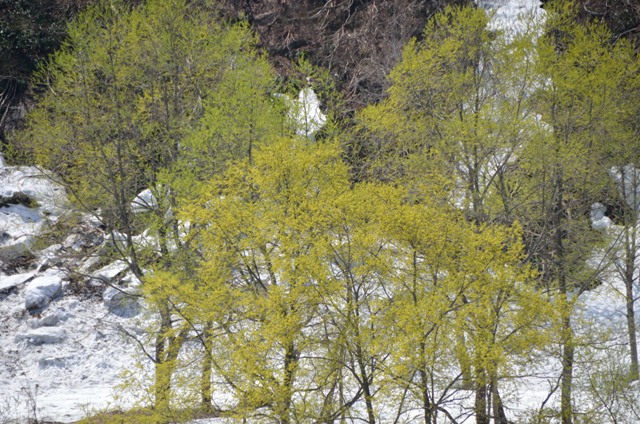 4/27 伊南川対岸スノーシェッドの上のヤナギ