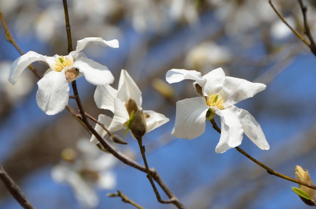 思いついてカメラを持って出て、お寺の前に咲く春の花を写す。