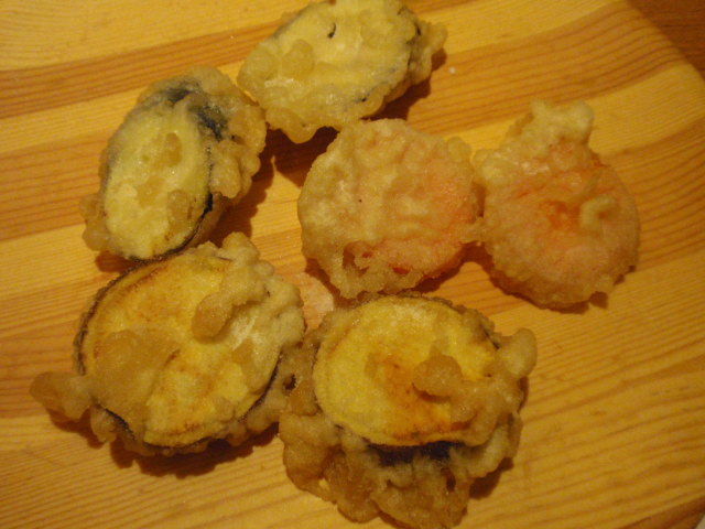 上記の野菜の天ぷら皿が片付いた場所に、かき揚げが置かれたのでつい。