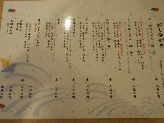 どうやらトッピングの天ぷらは全品¥300・うどんは全品¥550