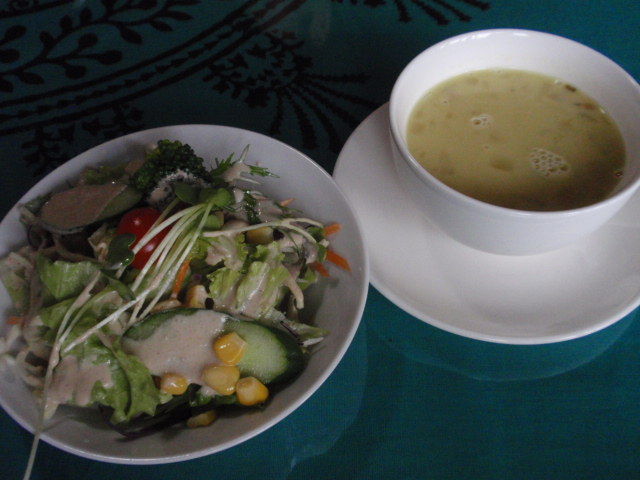 セットのサラダとスープ。