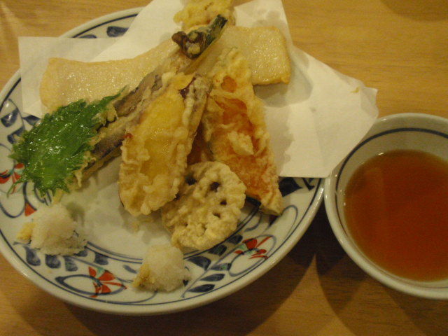 野菜天はナス・イモ・カボチャ・レンコン・大葉の5種類。