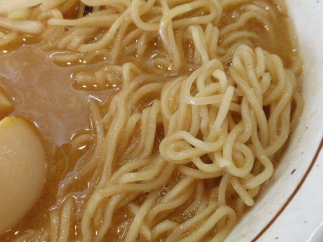麺は思ったよりも食感が硬めで、濃厚なスープに負けない強さがあります。