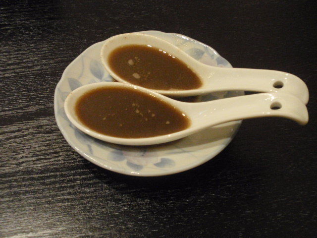 つけ汁は動物系のコクのなかにも魚介の風味を強く感じるので、