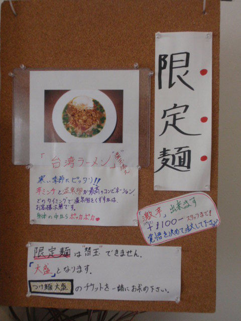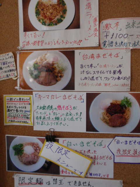 他にも限定で「台湾まぜそば」と「台湾ラーメン」がありました。
