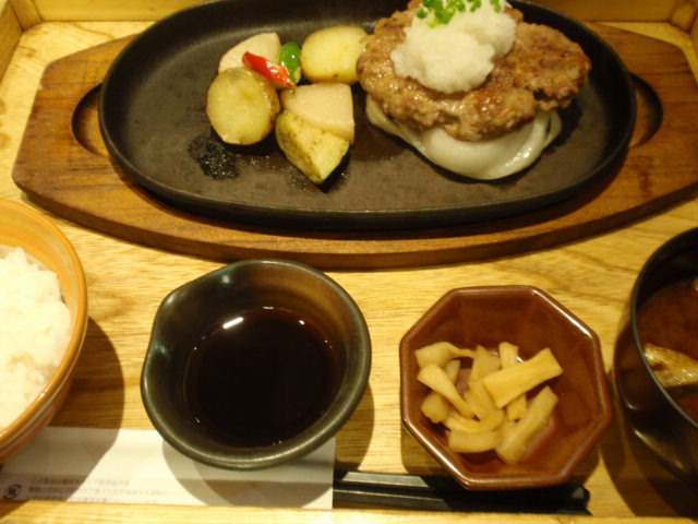 今日はじゃんご岡崎北店に行こうと向かったのですが、なぜかクローズでやっていなかったので近くの大戸屋に行きました。炭火焼き手ごねハンバーグのおろし梅ぽん酢定食¥890