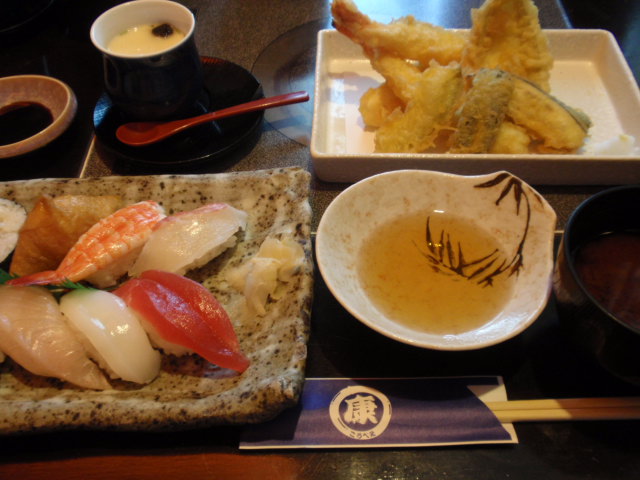 今日はちょっと贅沢なランチをいただきたく、岡崎にある康兵衛さんへ。自慢の天ぷらや寿司が、ランチならお値打ち価格でいただけます。
