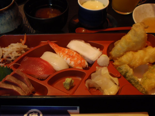 こっちはお寿司が4貫(マグロ・イカ・エビ・タコ)。天ぷらはエビ・キス・かぼちゃ・ししとうの4品。