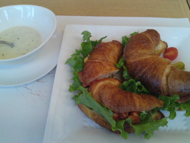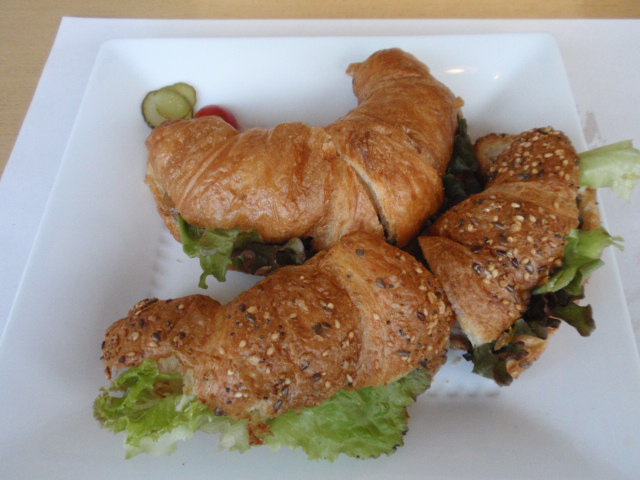 私が頼んだAセットはクロワッサンにトマト&チキン?とアボカド&生ハム?のサンドイッチ。