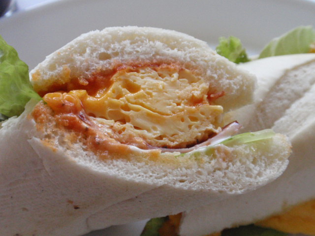 こっちも温かいパンに、作りたてのオムレツがたっぷりサンドしてありました♪