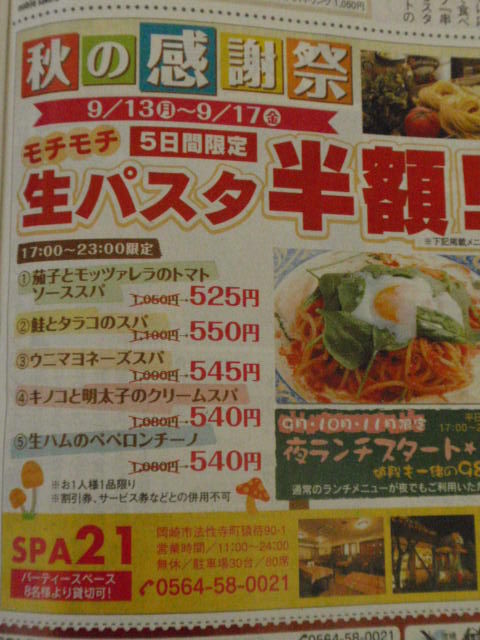 1/16、岡崎にある生パスタのお店、スパ21さんへお邪魔してきました。