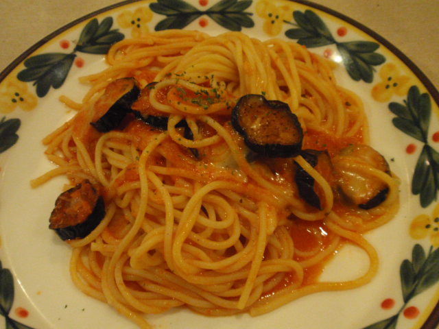 茄子とモッツァレラのトマトソーススパ¥525(通常価格1,050)