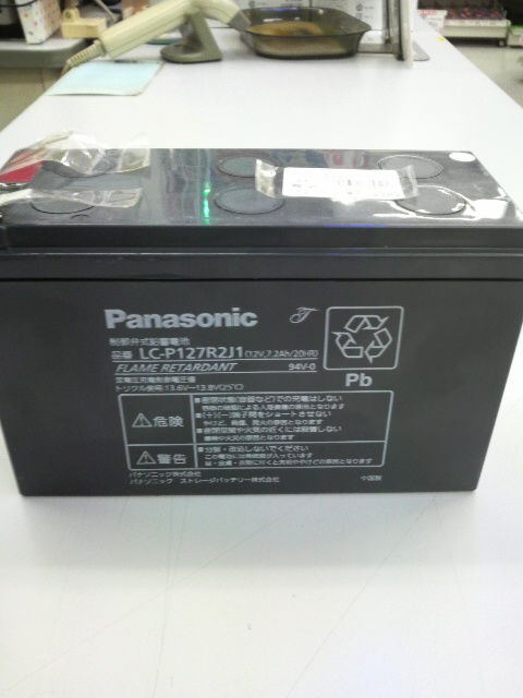 中古バッテリー 1,280円税込 今回の商品は2013年製造の新古品、パナソニック LC−P127R2J1 12V、7.2Ahです。