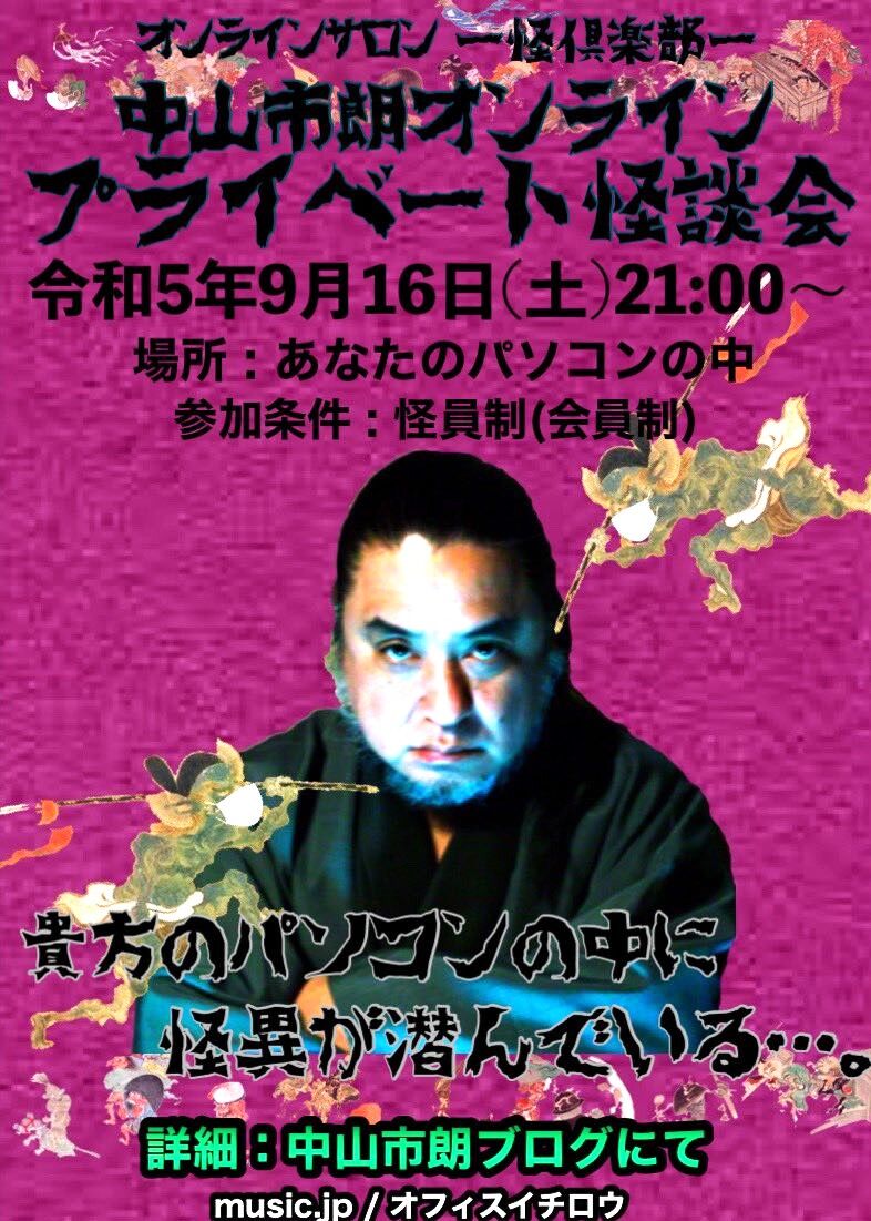 月額制。プライベート怪談会、中山市朗の『怪』講座など